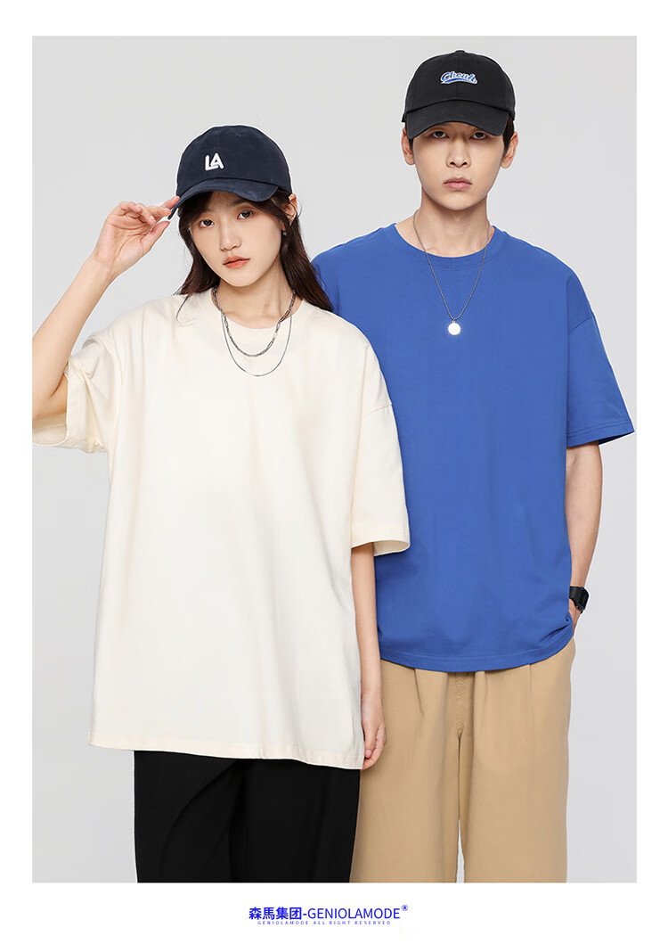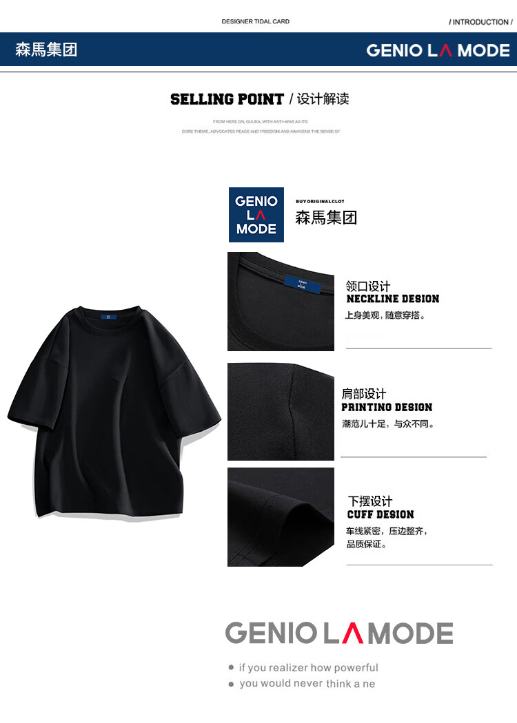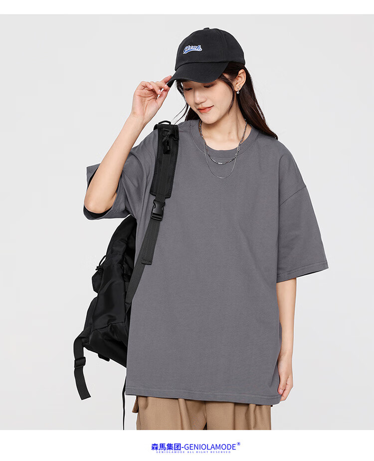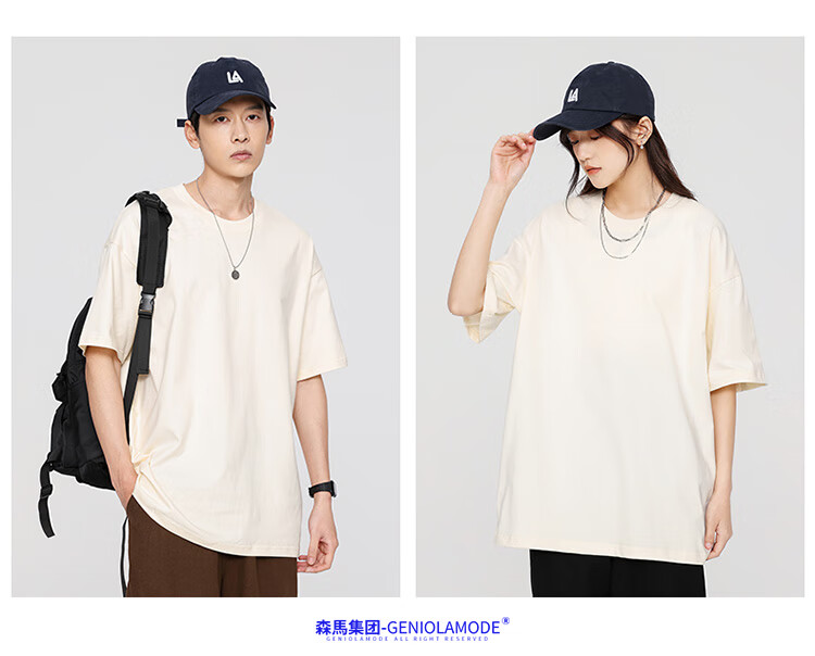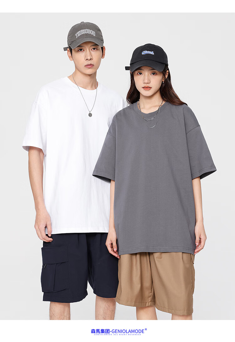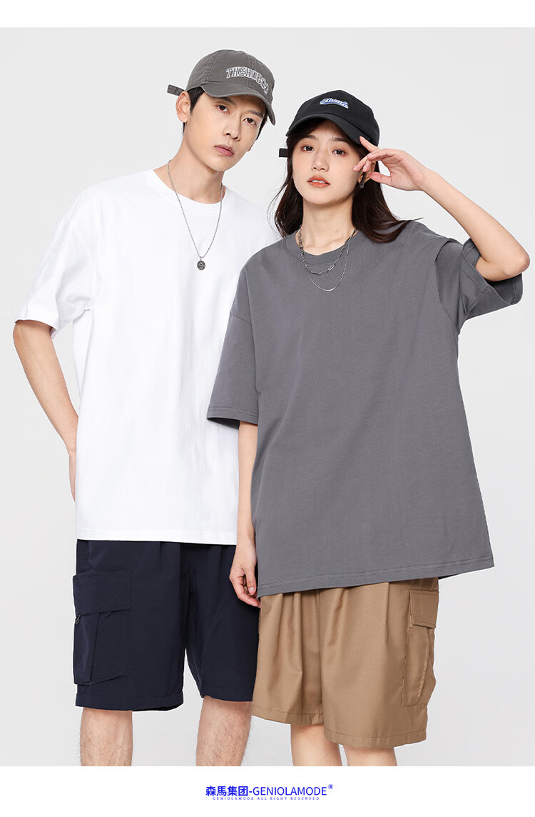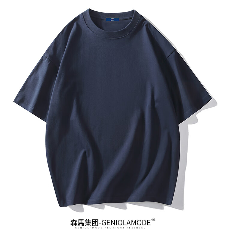 GENIOLAMODE森马集团短袖T恤男纯色基础宽松休闲纯棉五分袖舒适潮牌百搭t恤