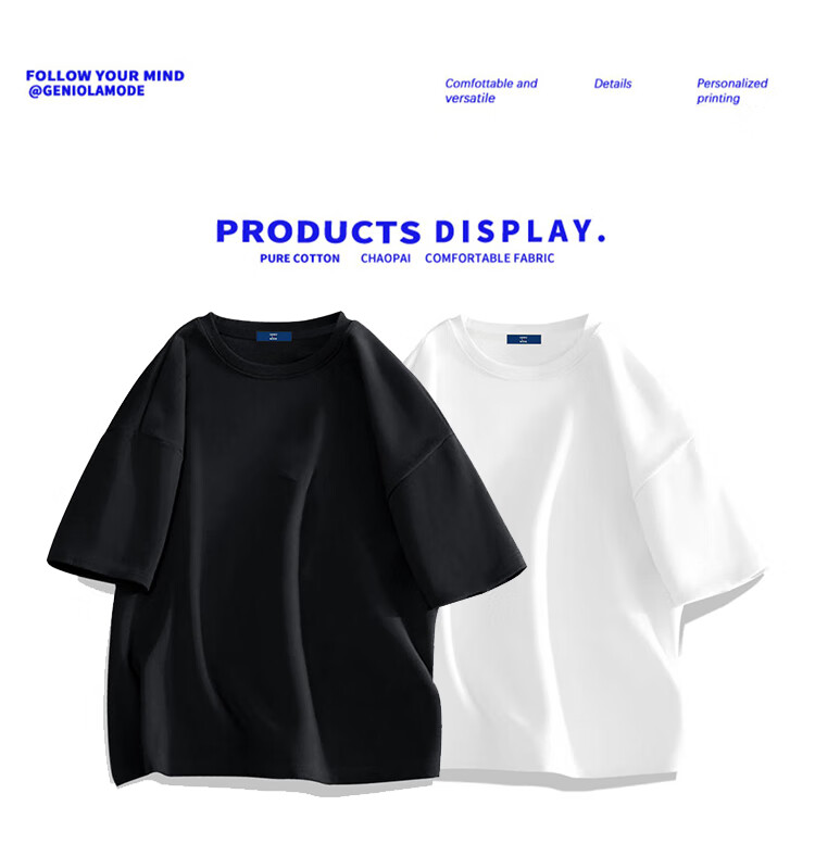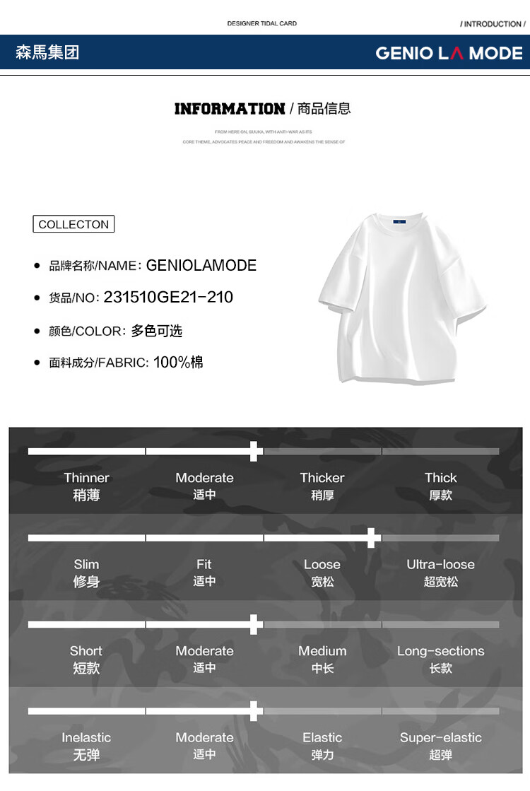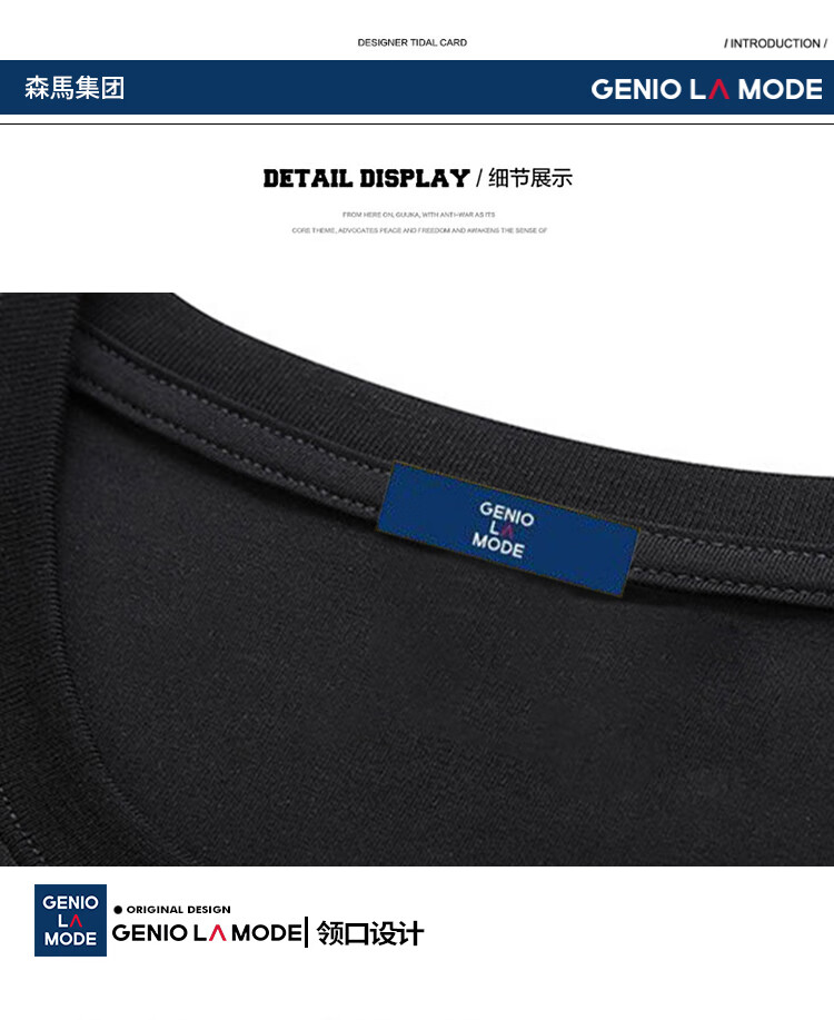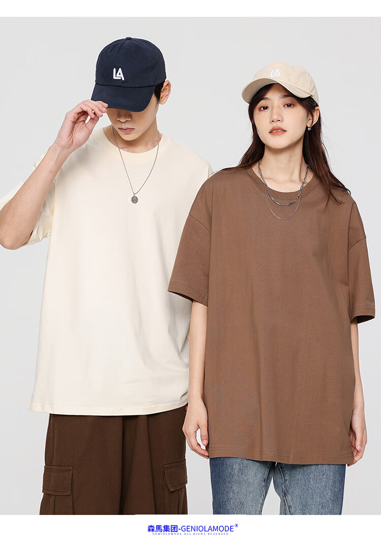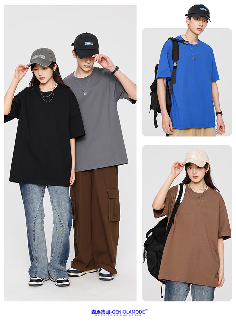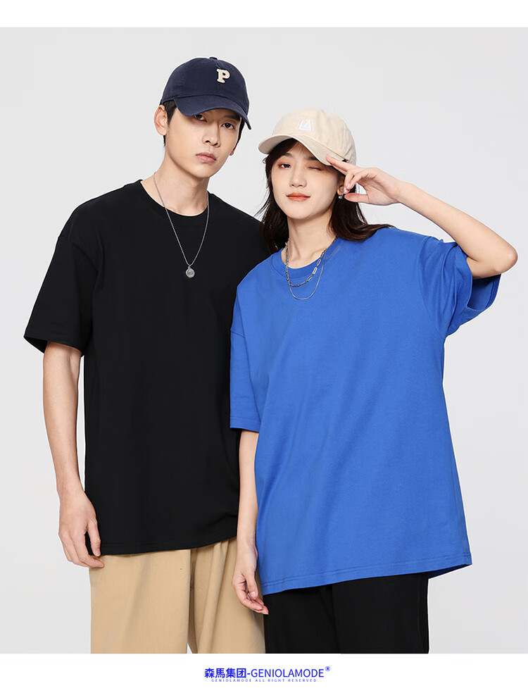 GENIOLAMODE森马集团短袖T恤男纯色基础宽松休闲纯棉五分袖舒适潮牌百搭t恤