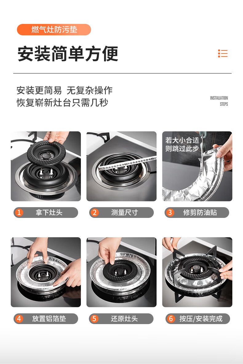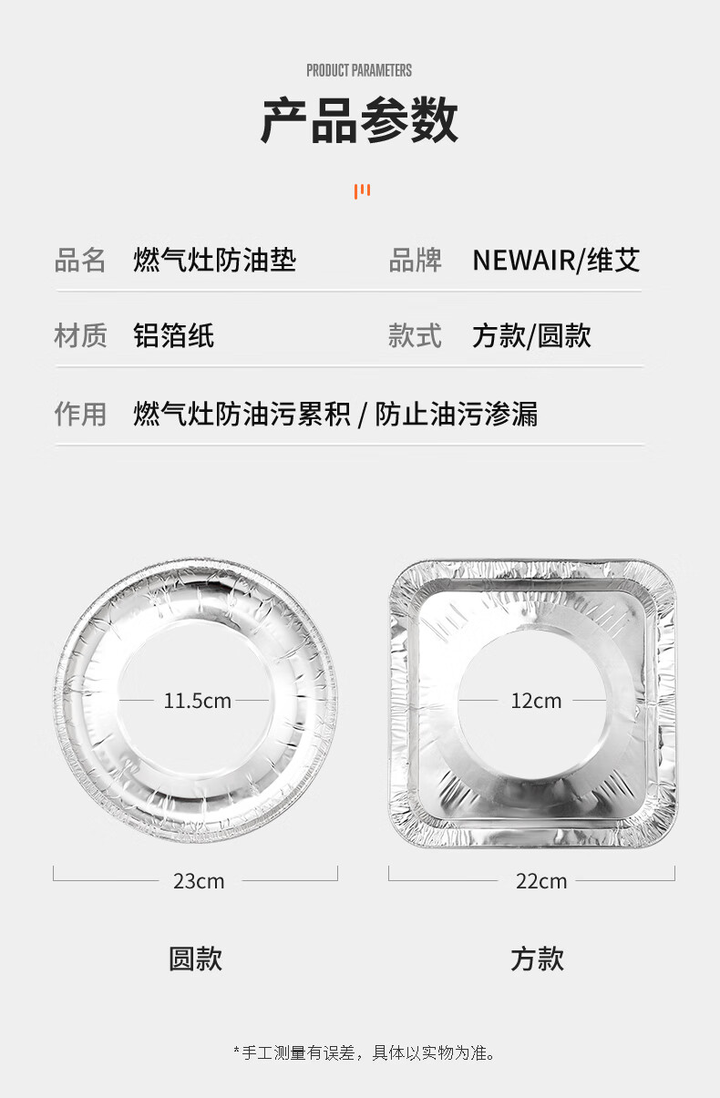 维艾(Newair)燃气灶防油垫煤气锡纸贴集成炉头灶台贴纸底下保护圈厨房铝箔纸