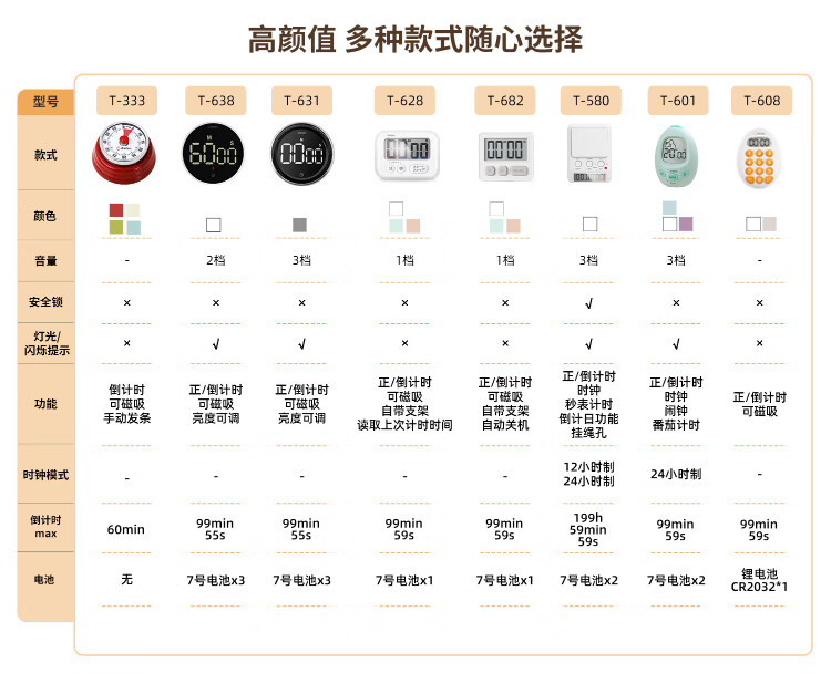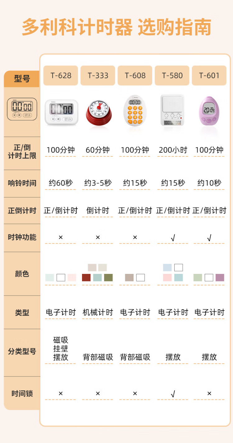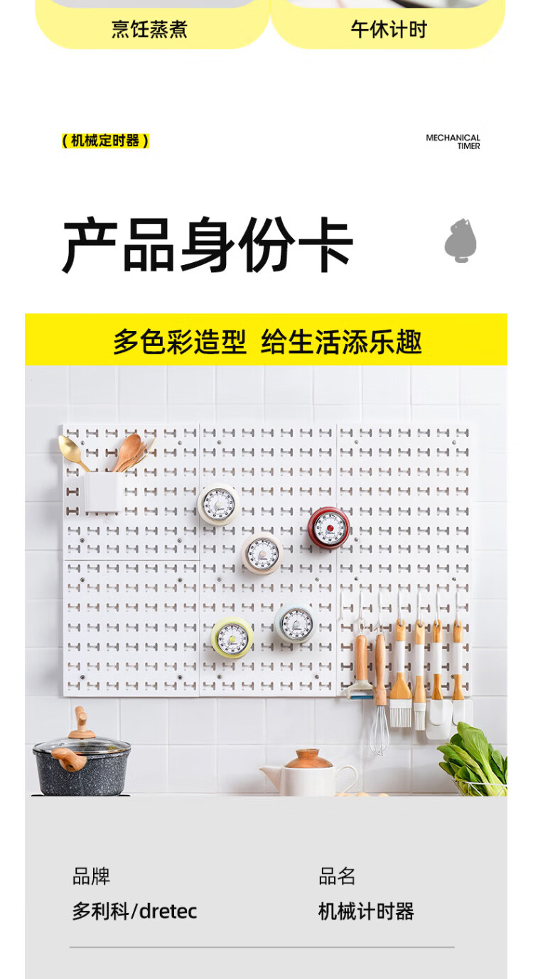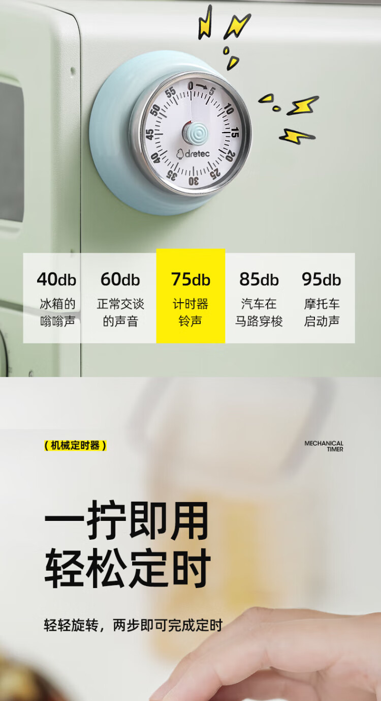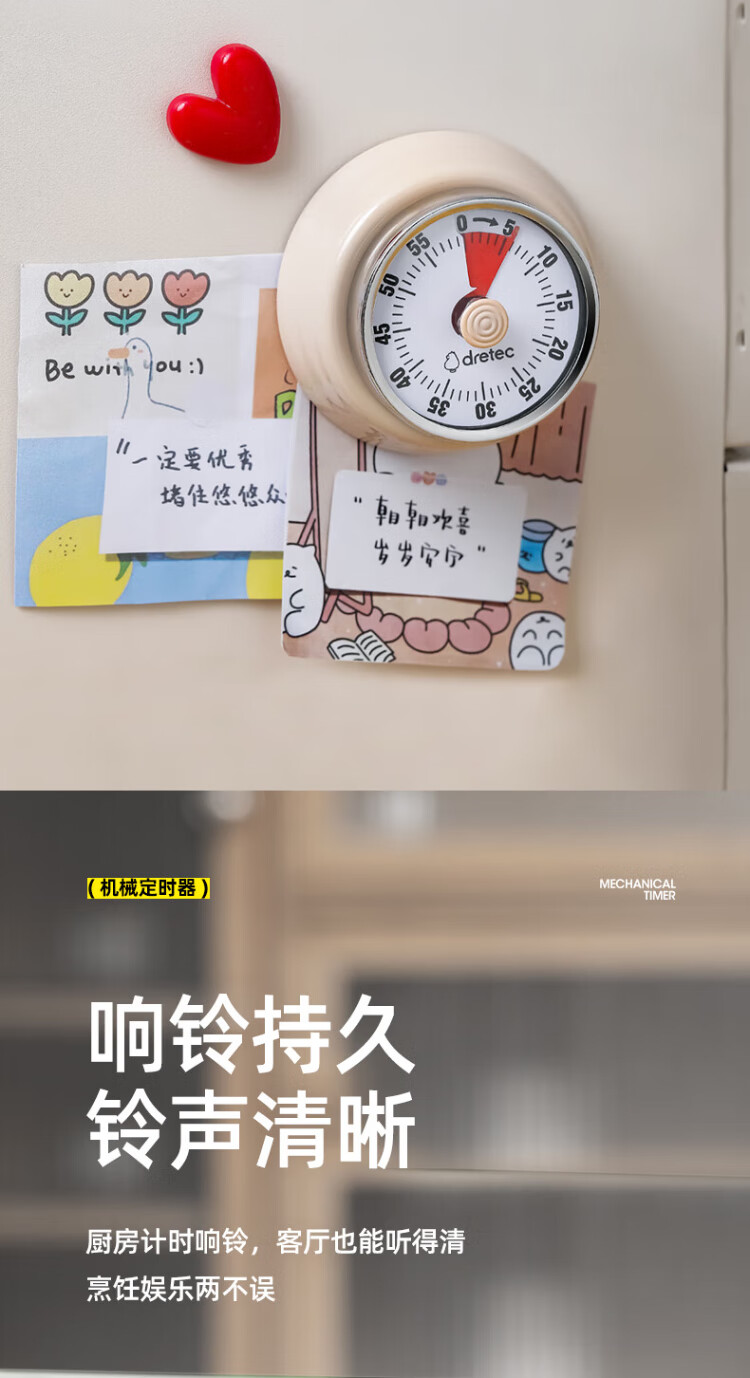 多利科(Dretec)日本计时器厨房定时器机械吸冰箱时间计时器时钟闹钟提醒器米白色