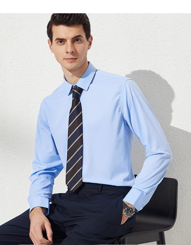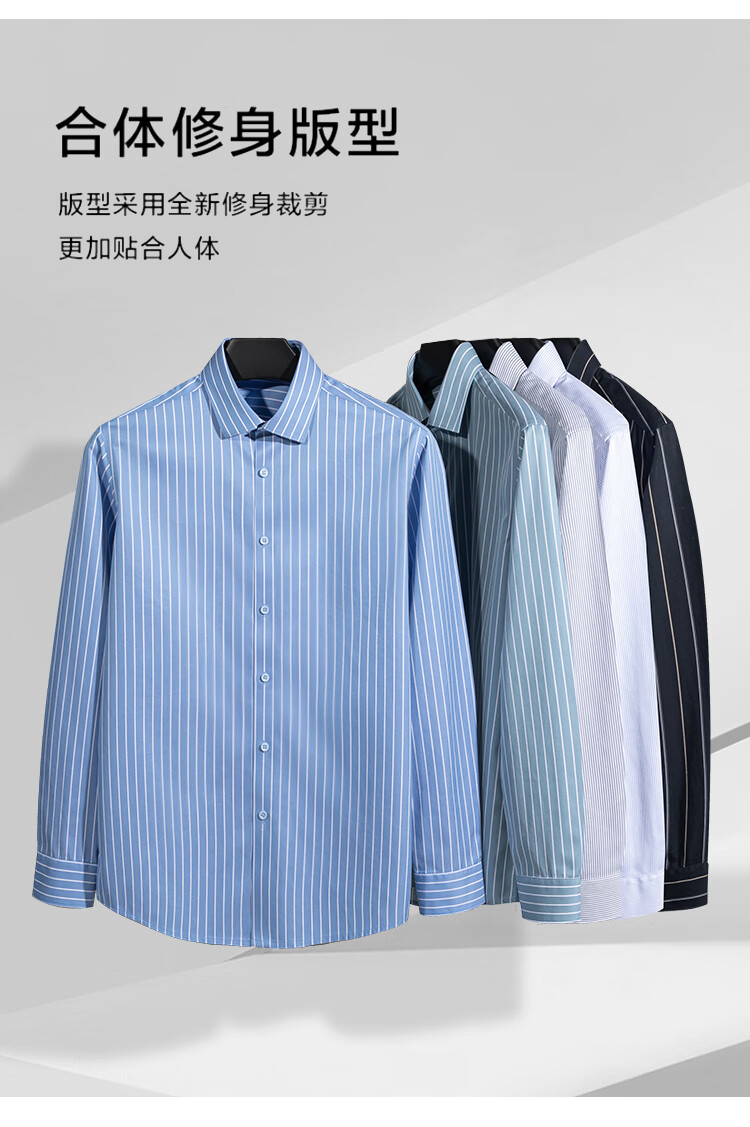 Shanshan DP no-iron 80-count pure cotton long-sleeved shirt men's business casual striped skin-friendly anti-wrinkle men's shirt