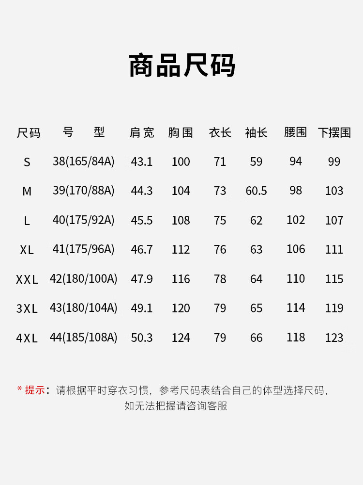 China (cm) 160-165/84-86 165-170 / 88-90 167-172 / 92-96 168-173 / 98-102 170-176 / 106-110