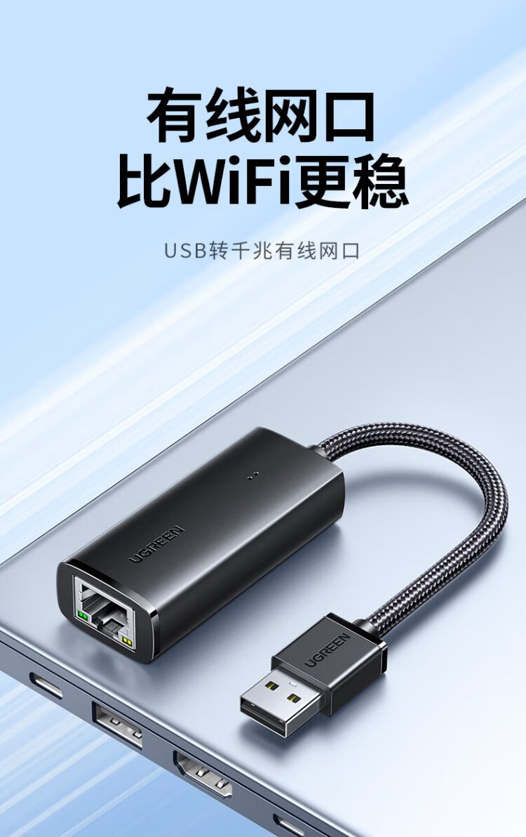 Greenlink USB3.0 adapter network port Gigabit wired network card to RJ45 network port network cable adapter braided model suitable for notebook desktop external docking station converter