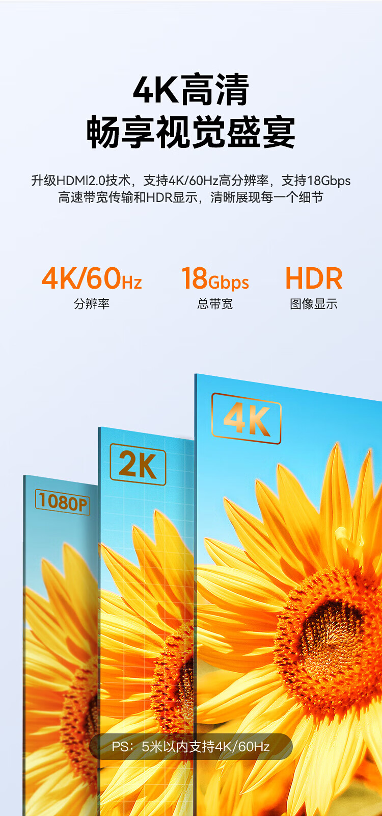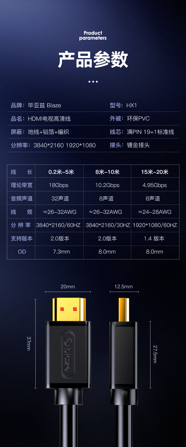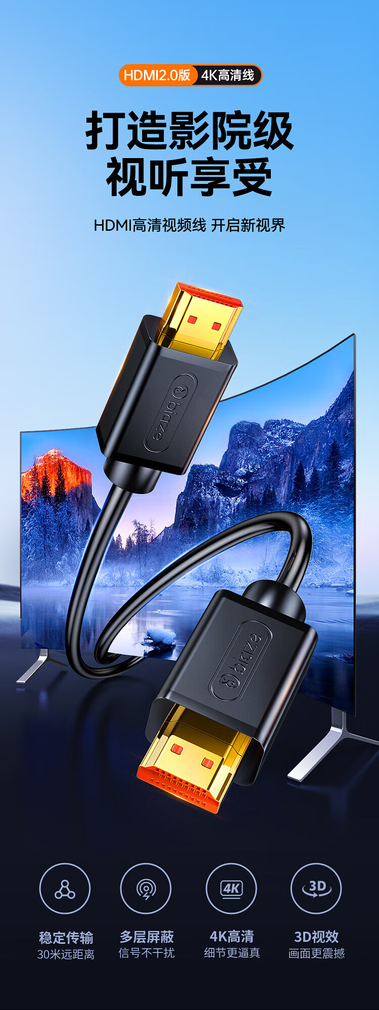 Biaz HDMI cable engineering grade 6 meters 4K/60HZ high-definition cable 3D video cable laptop set-top box connection TV projector display data cable