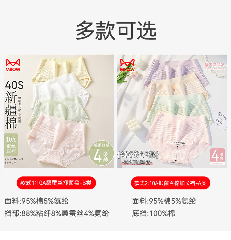 Catman 4 pares de ropa interior para mujer, algodón puro, algodón para bebé, 10a, seda de morera, parte inferior, entrepierna, alta elasticidad, talla grande, cintura media, cómoda y transpirable L