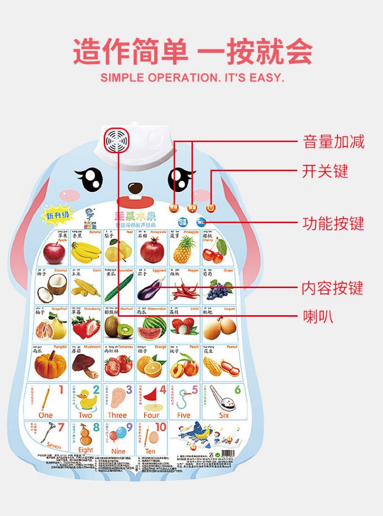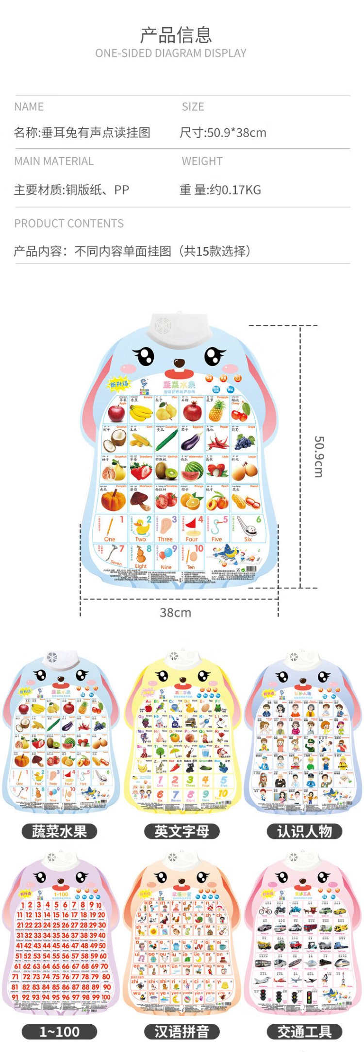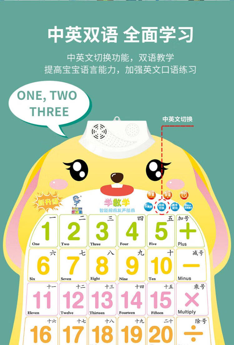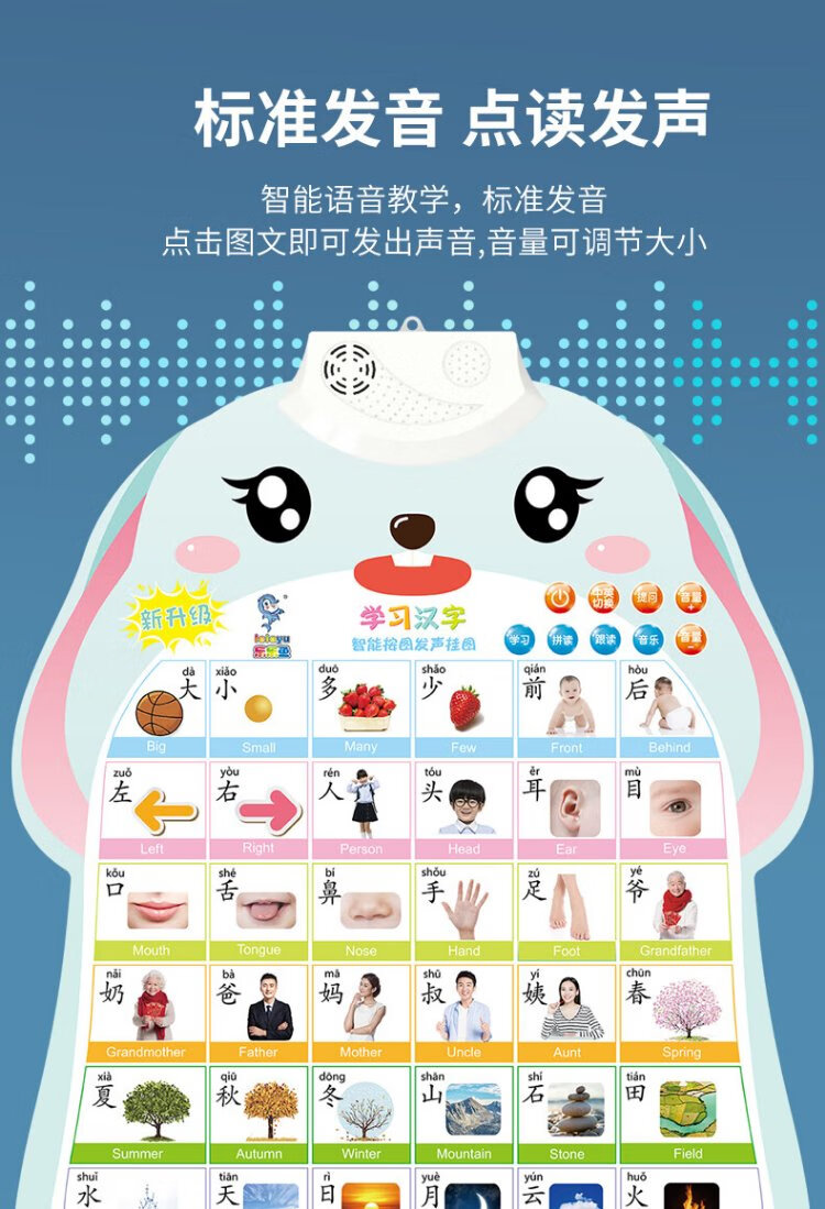 乐乐鱼(leleyu)卡通兔早教有声挂图儿童玩具宝宝识字表拼音数字男孩女孩生日礼物