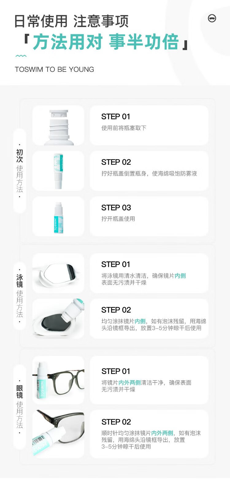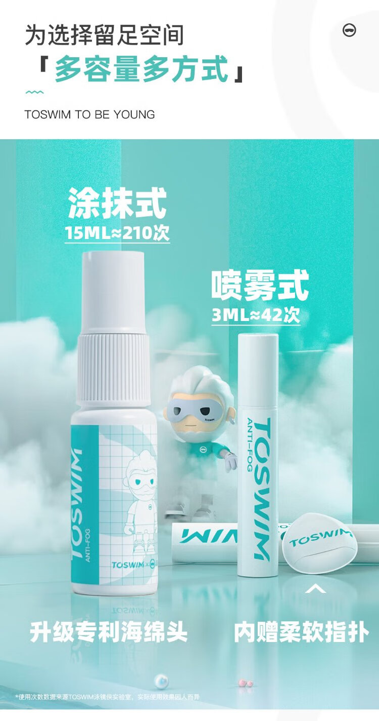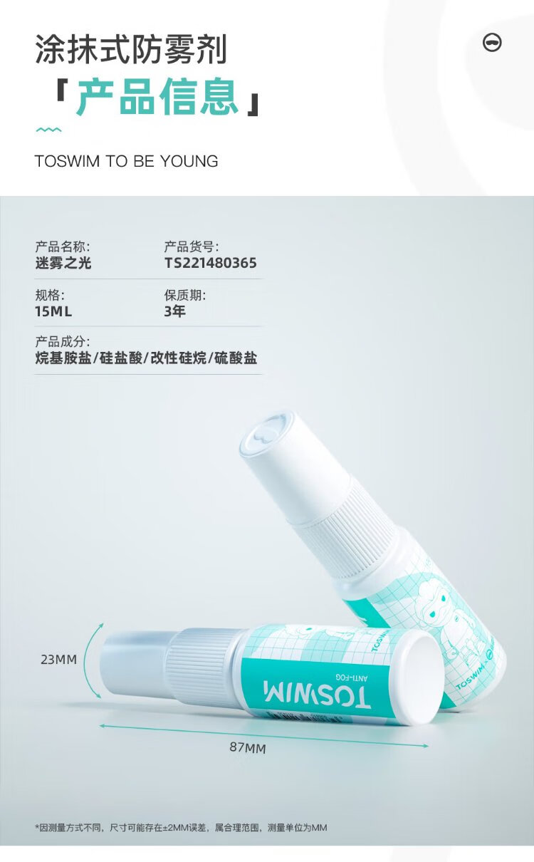 TOSWIM拓胜泳镜镜片防雾剂游泳眼镜除雾防水防雾高清剂 迷雾之光15ML