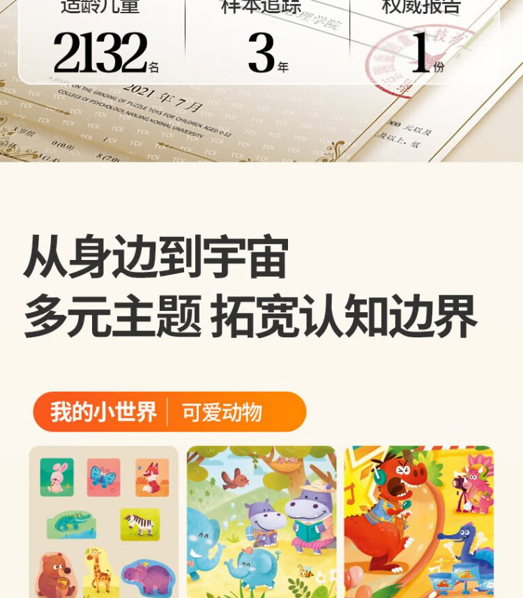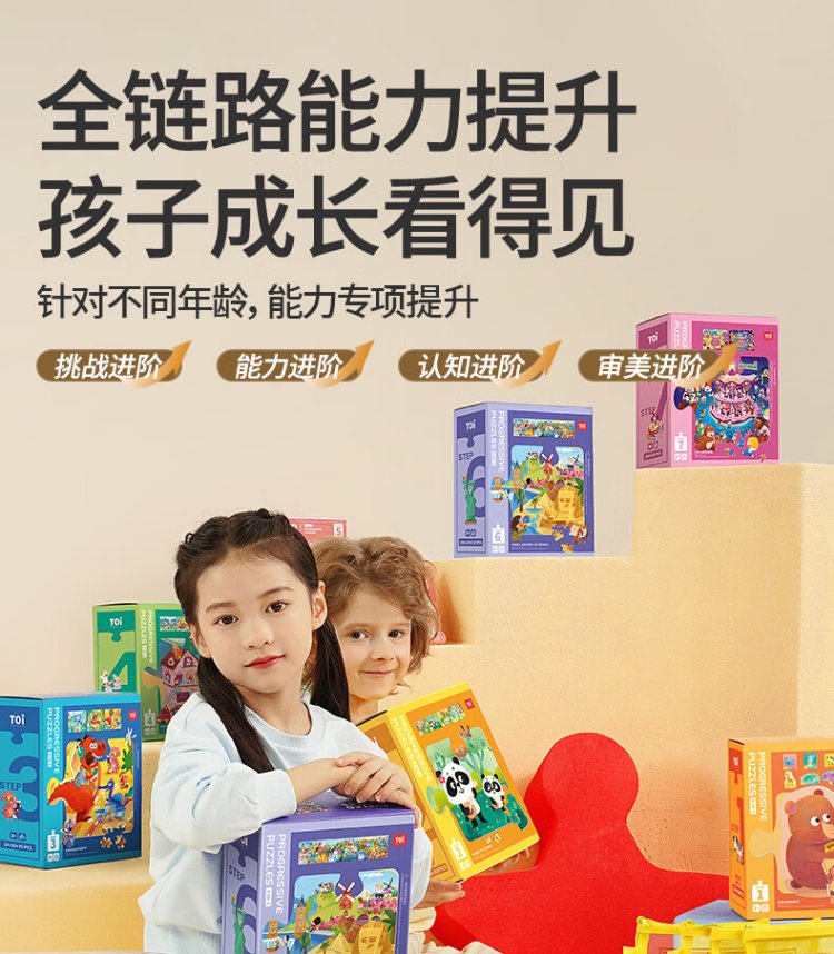TOI进阶早教拼图儿童玩具3-6岁纸质男女孩儿童生日礼物5阶环球动物