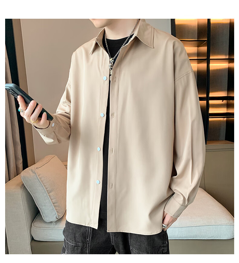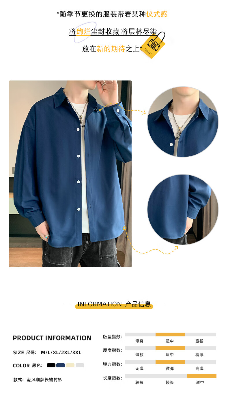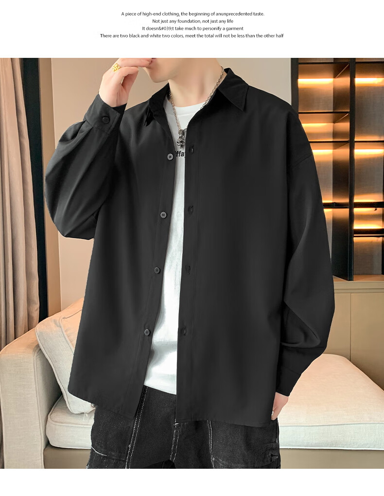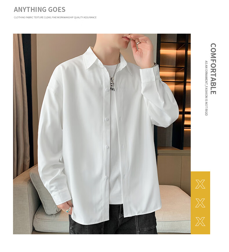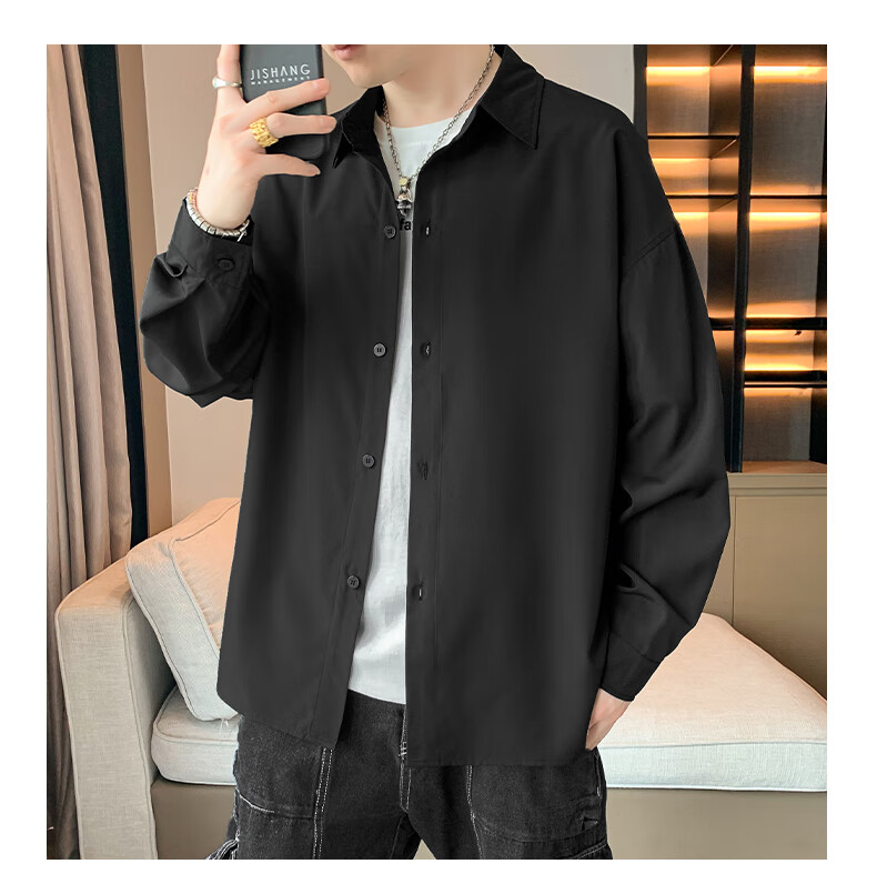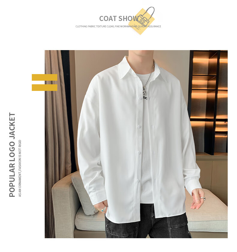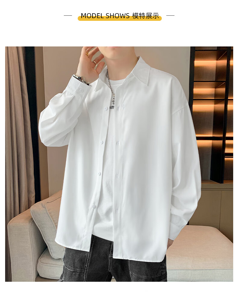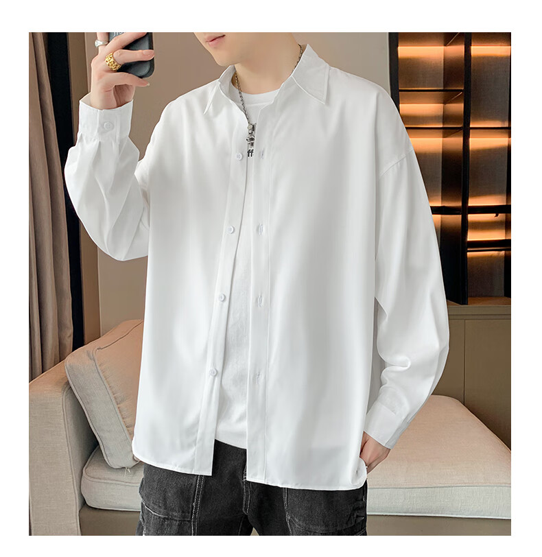 Foss Phil长袖衬衫男士秋冬季港风休闲衬衣百搭简约打底衫外套7304白色L
