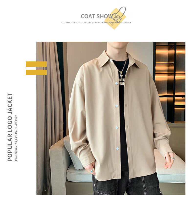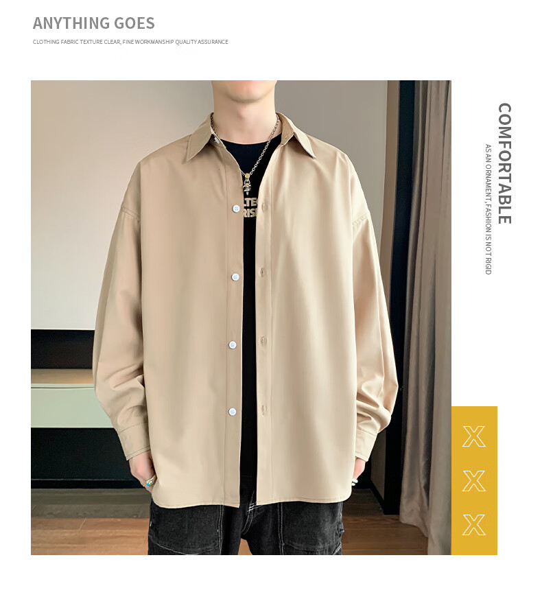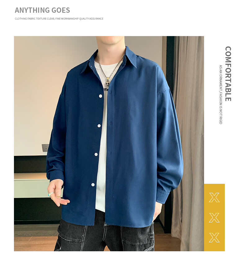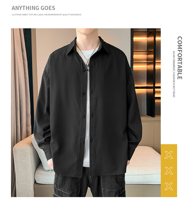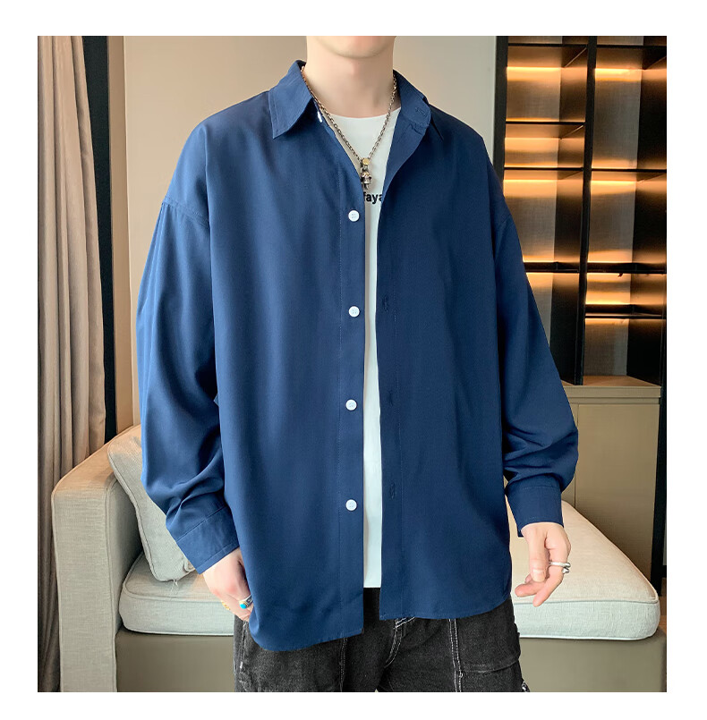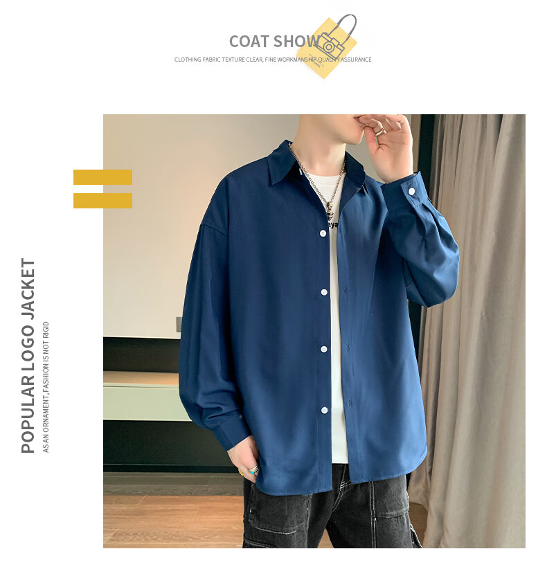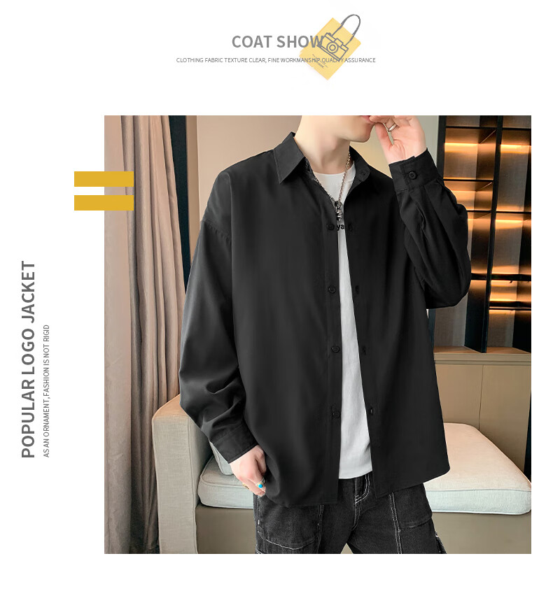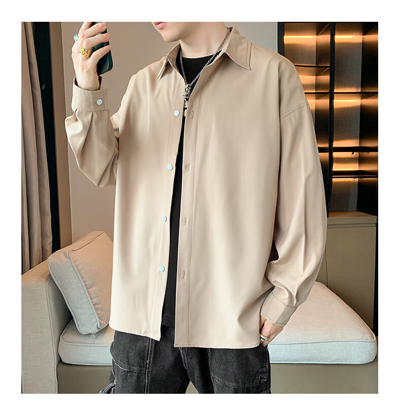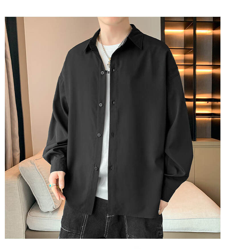 Foss Phil长袖衬衫男士秋冬季港风休闲衬衣百搭简约打底衫外套7304白色L