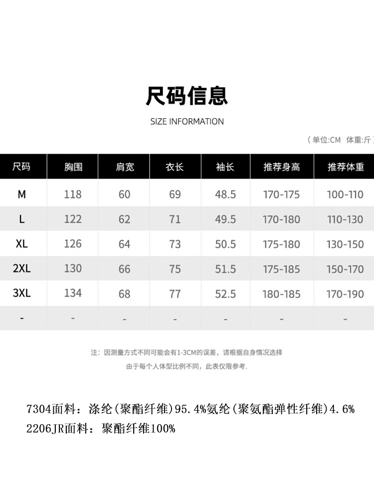 China (cm) 165 / 88-90 170 / 96-98 175 / 108-110 180 / 118-122 185 / 126-130
