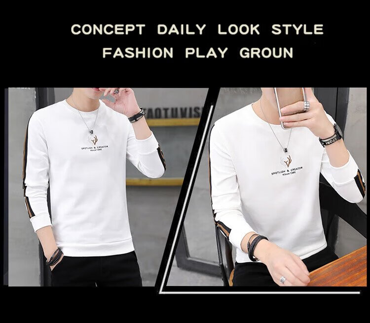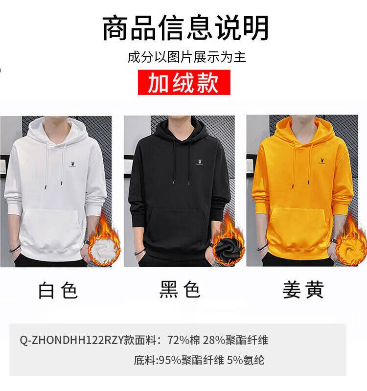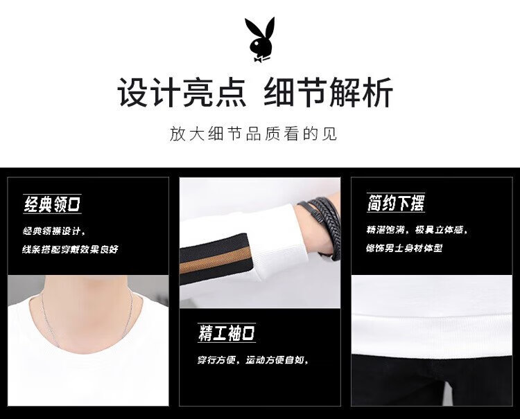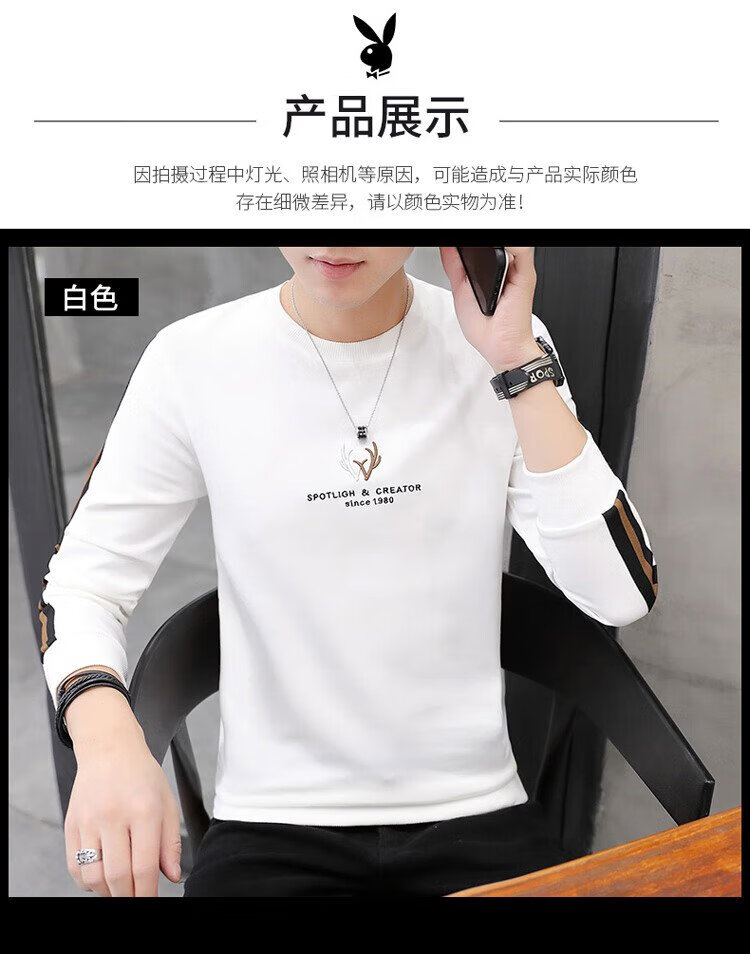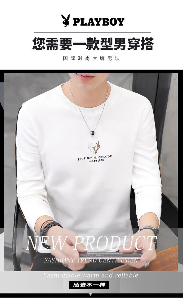 Playboy (PLAYBOY) толстовка мужская осенне-зимняя футболка с длинными рукавами мужская куртка повседневный мужской свободный топ белый XL