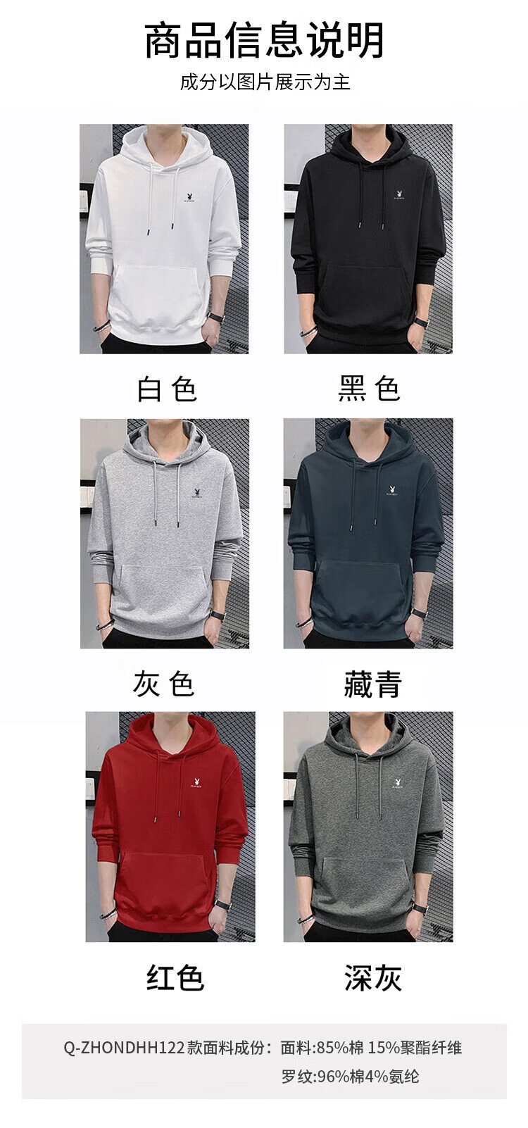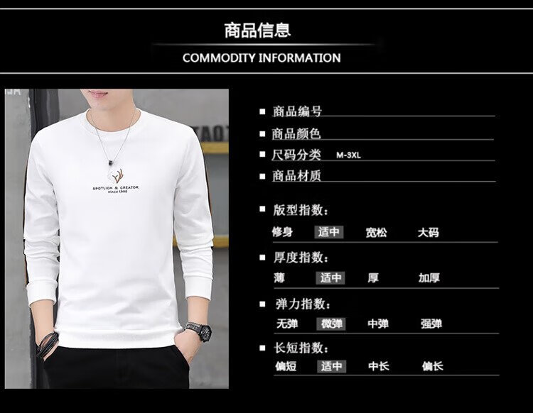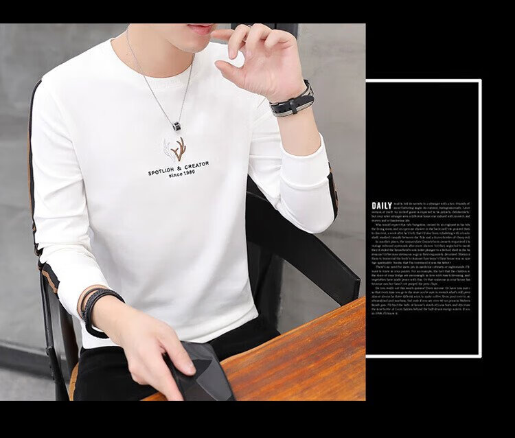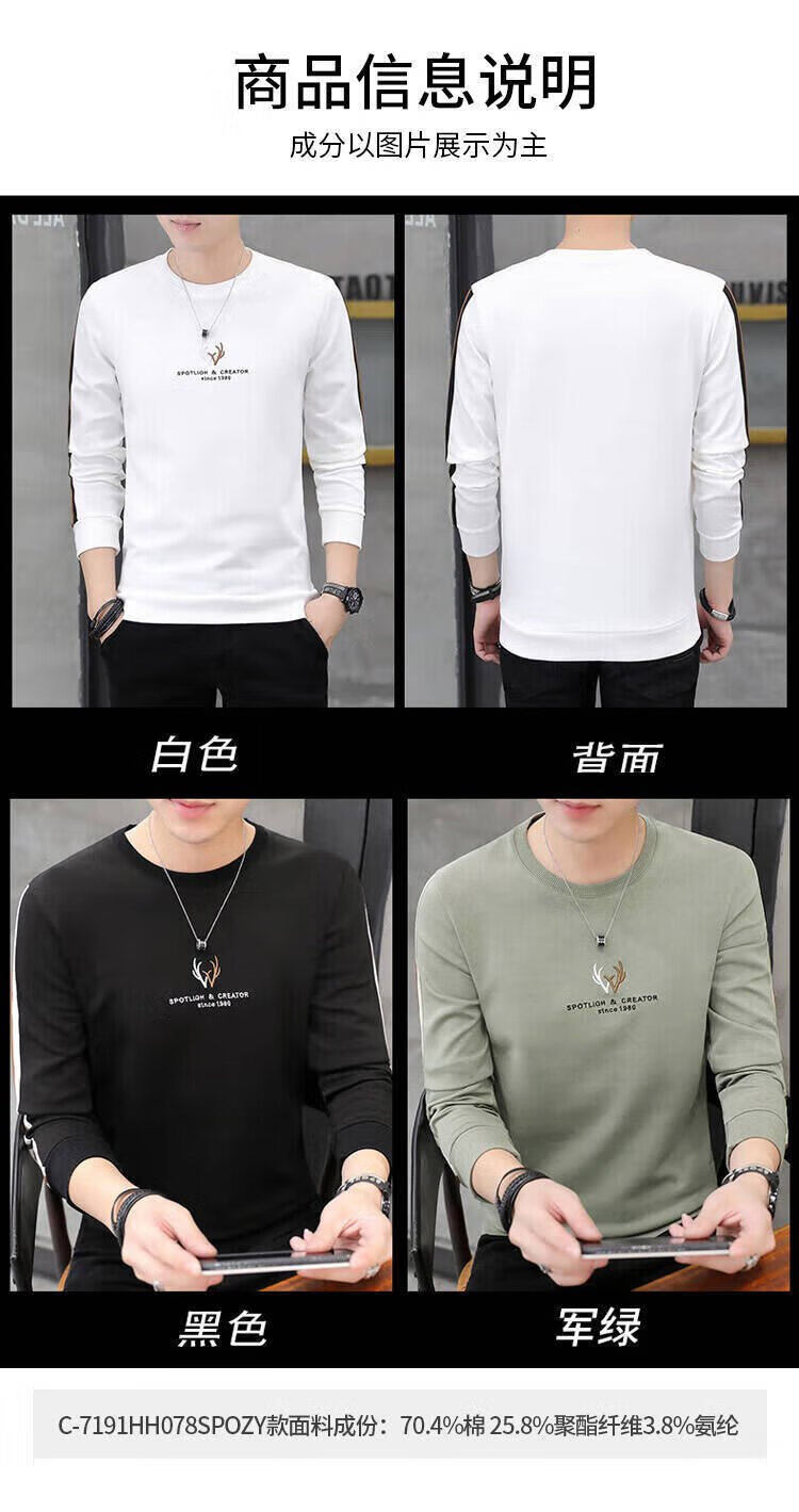 Playboy (PLAYBOY) толстовка мужская осенне-зимняя футболка с длинными рукавами мужская куртка повседневный мужской свободный топ белый XL