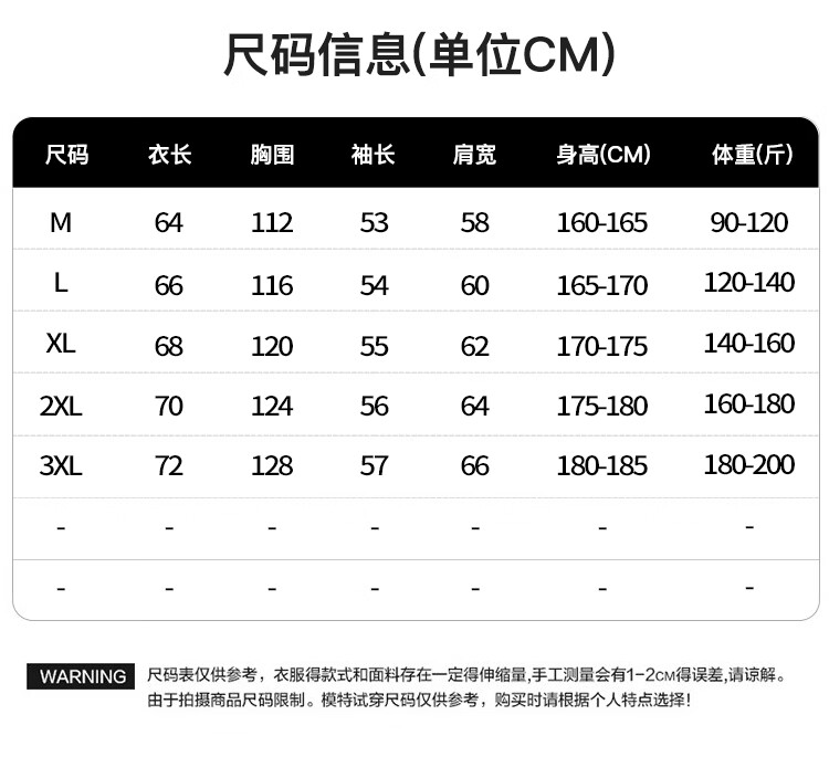 China (cm) 165 / 88-90 170 / 96-98 175 / 108-110 180 / 118-122 185 / 126-130