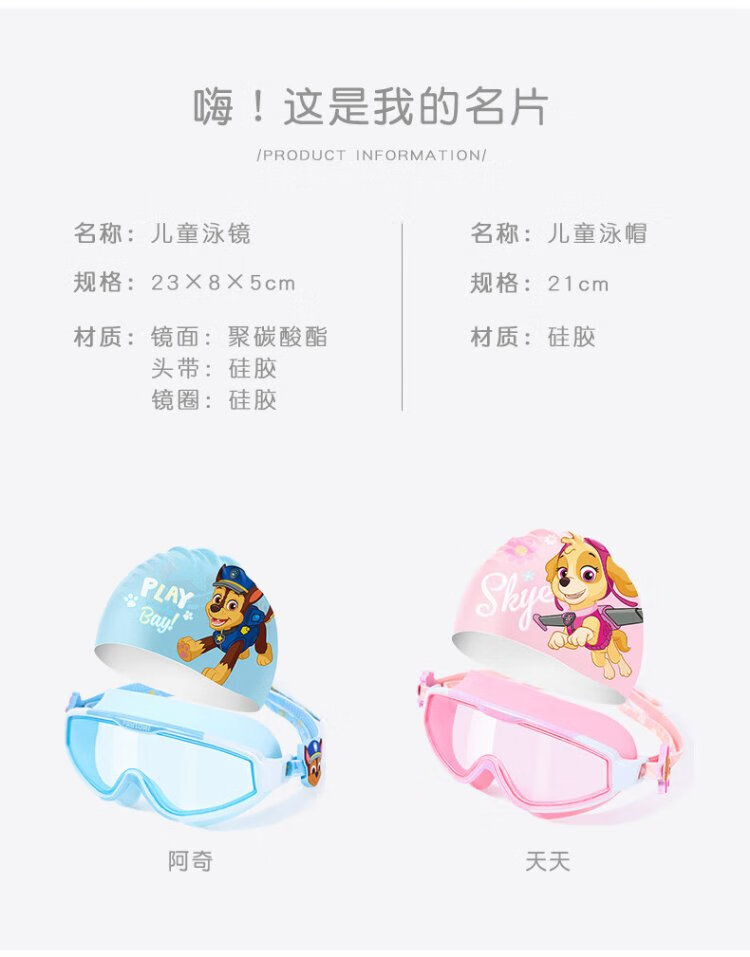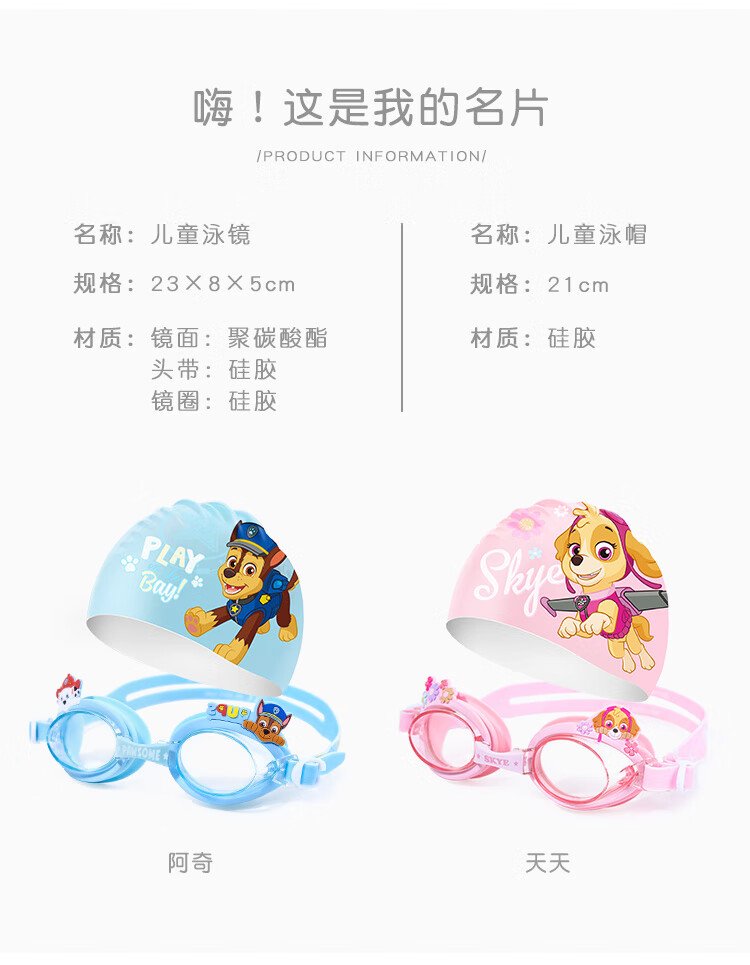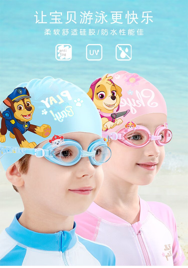 汪汪队立大功(PAW PATROL)儿童泳镜男童女童防水防雾高清训练泳帽套装宝宝游泳镜YJ2104天天