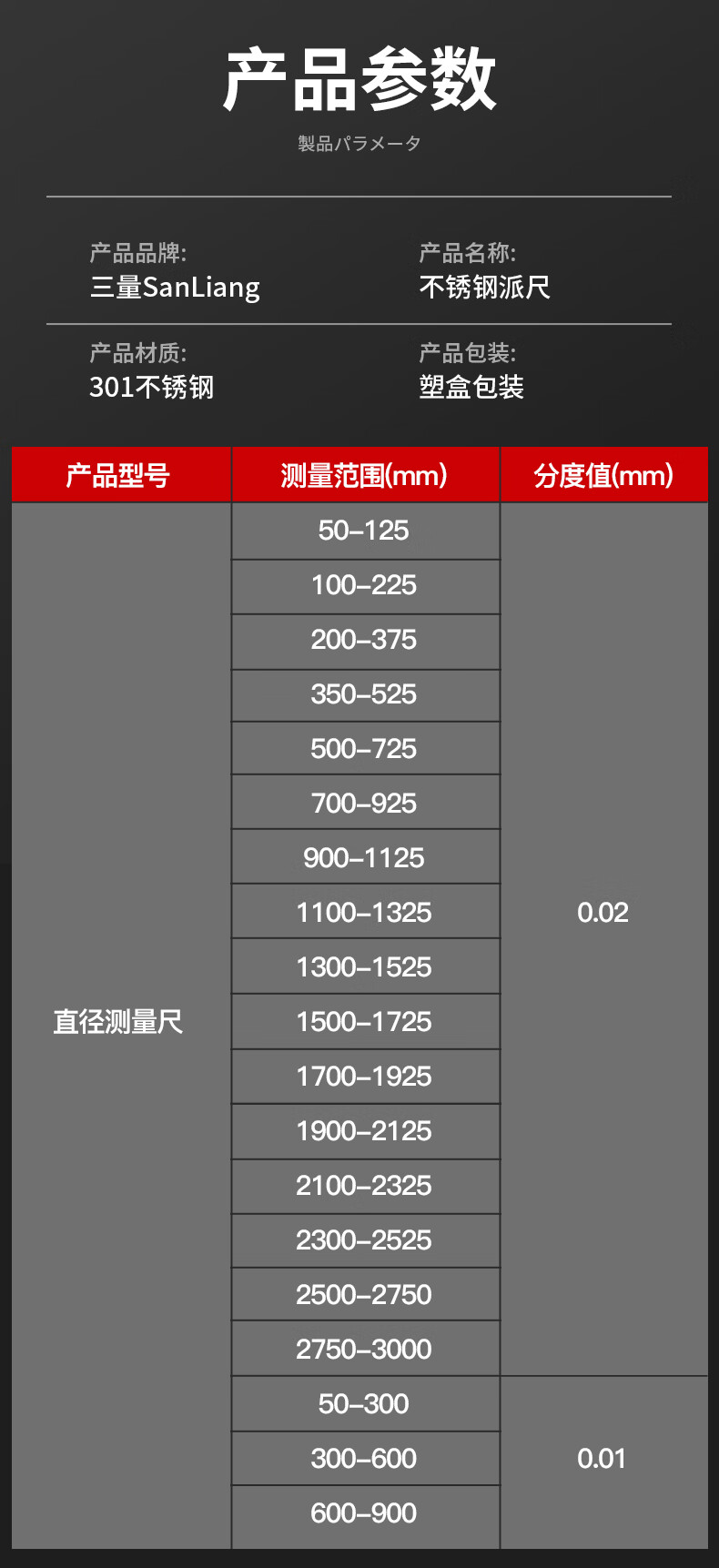 三量直径测量尺派尺兀尺不锈钢柔性外径圆周尺O型圈游标 不锈钢200-375mm