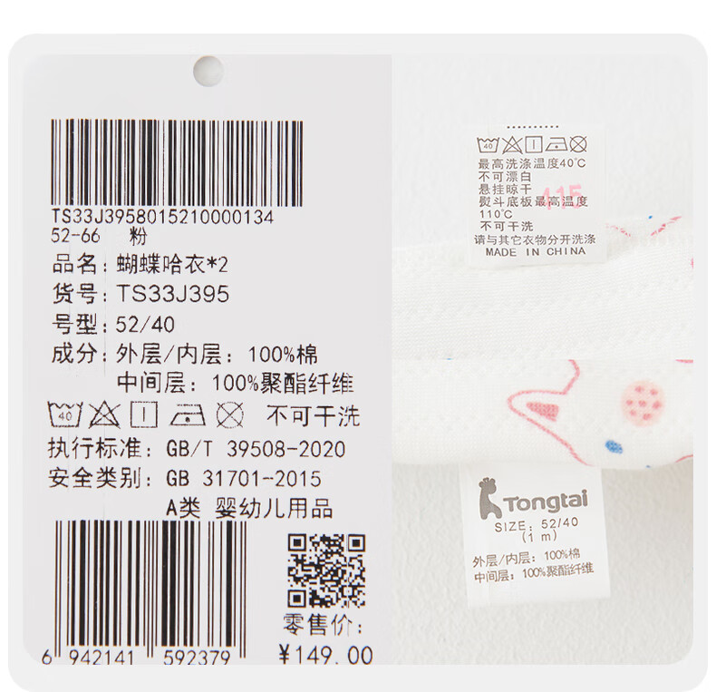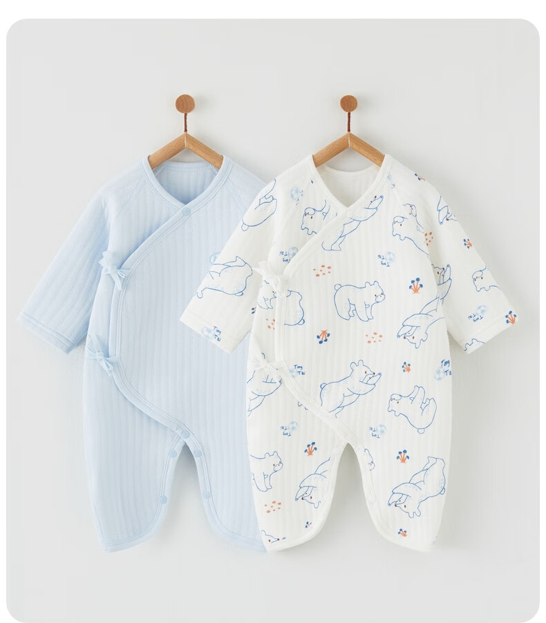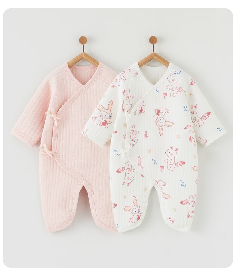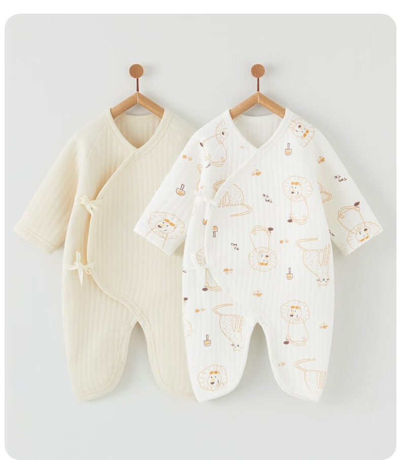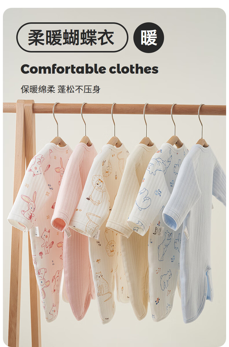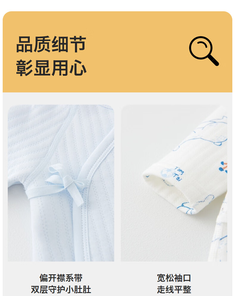 童泰新生婴儿连体衣秋冬季保暖宝宝衣服初生儿纯棉蝴蝶哈衣 黄色 66cm