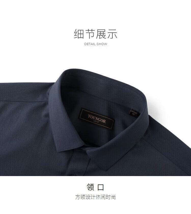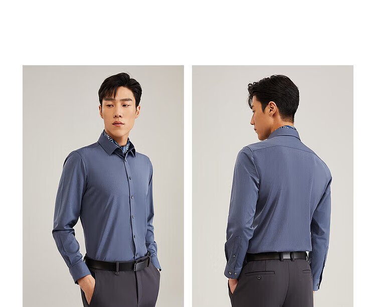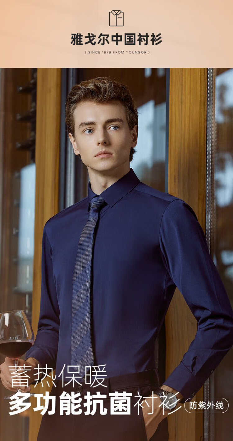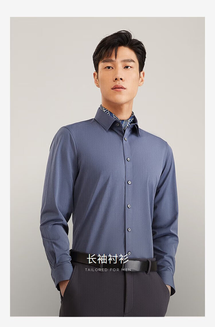 YOUNGOR heat storage and heating 2025 autumn and winter new business casual antibacterial easy care long-sleeved shirt for men gray 40