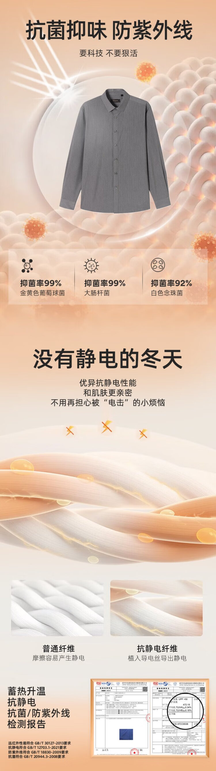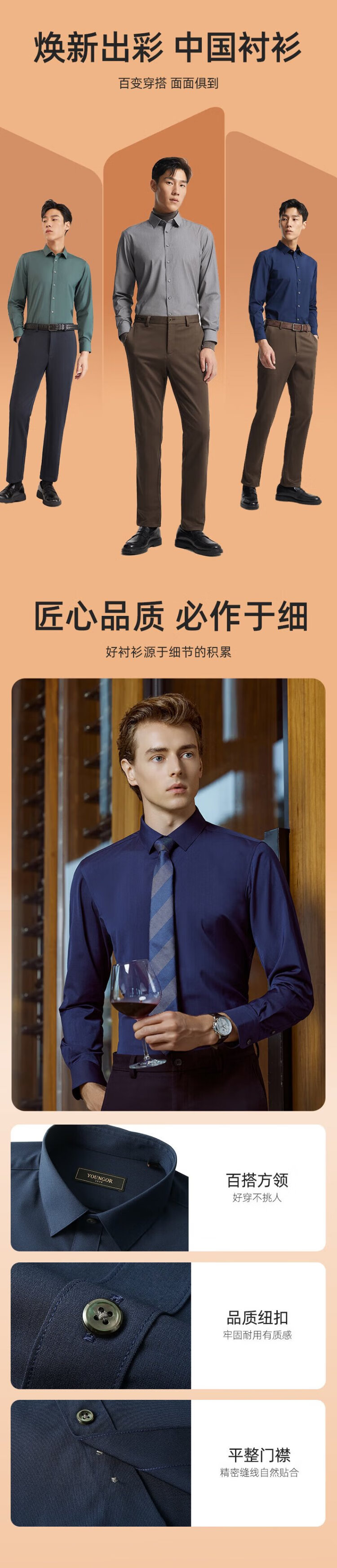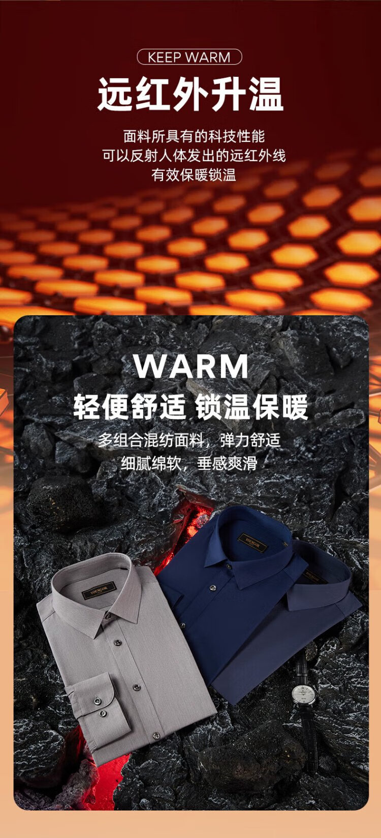YOUNGOR heat storage and heating 2025 autumn and winter new business casual antibacterial easy care long-sleeved shirt for men gray 40