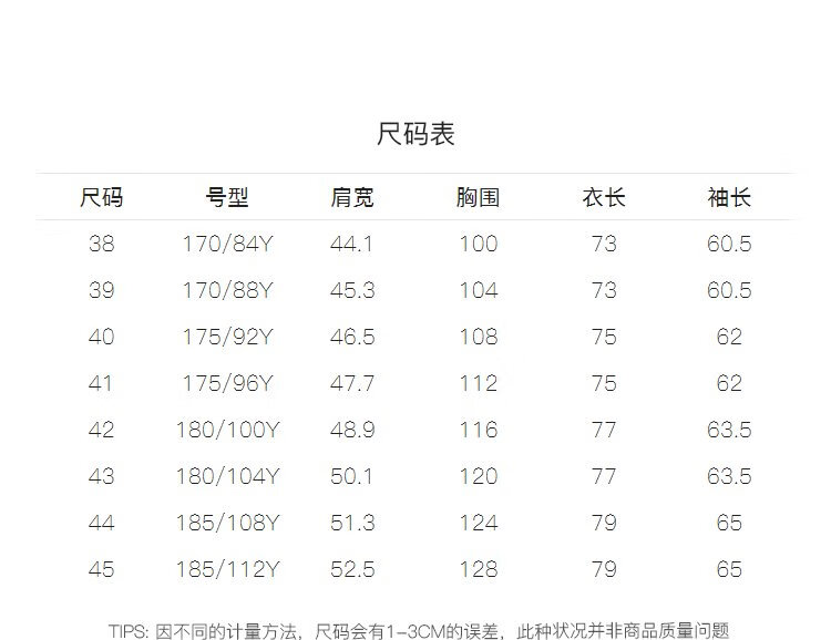China (cm) 165 / 88-90 170 / 96-98 175 / 108-110 180 / 118-122 185 / 126-130