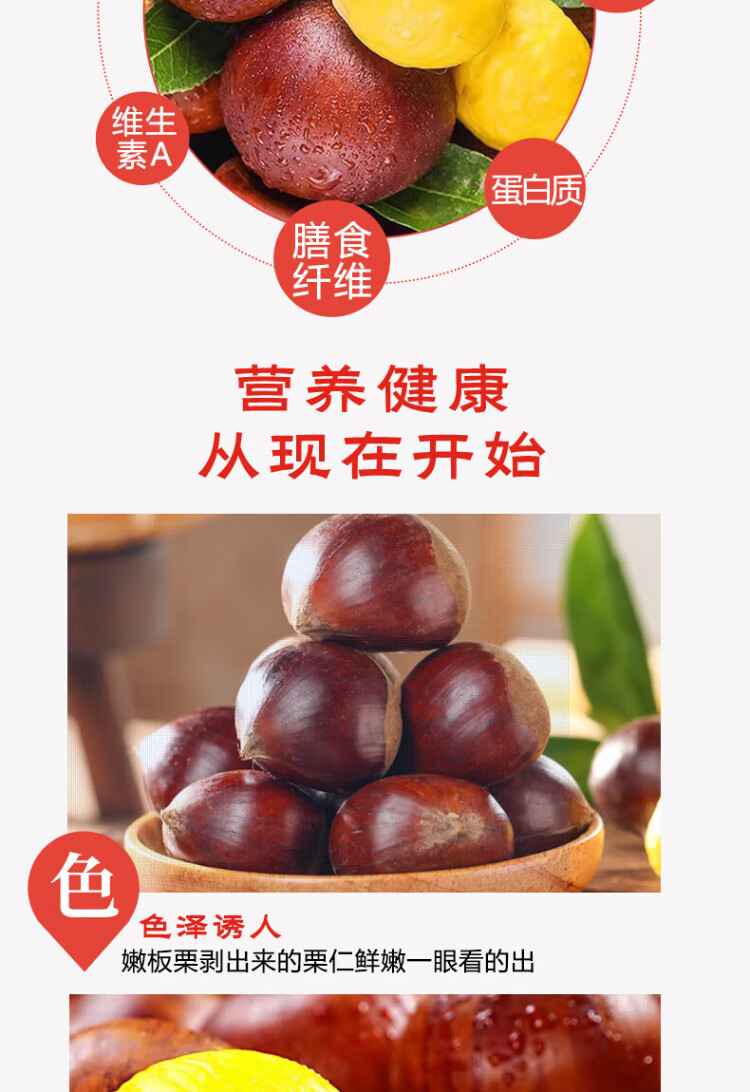 Jingxiansheng Dandong fresh chestnut, net weight 4.5Jin Jin is equal to 0.5kg, pink and glutinous sweet single fruit 27mm+, artificially selected, straight from the source