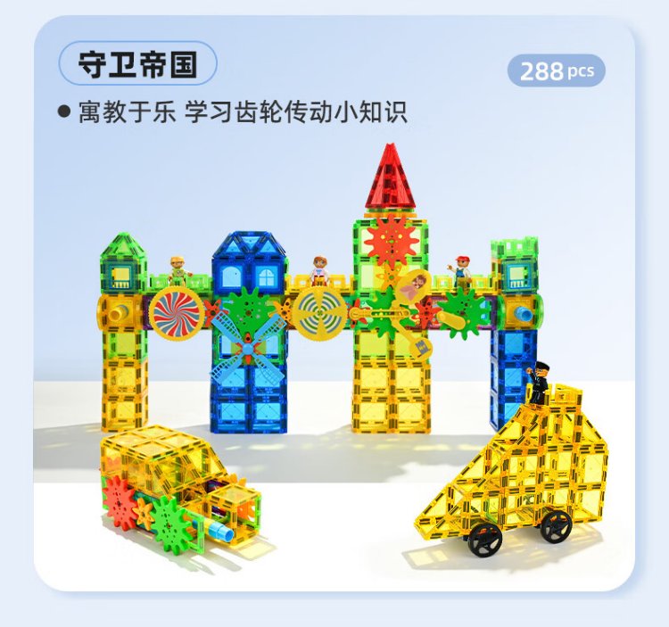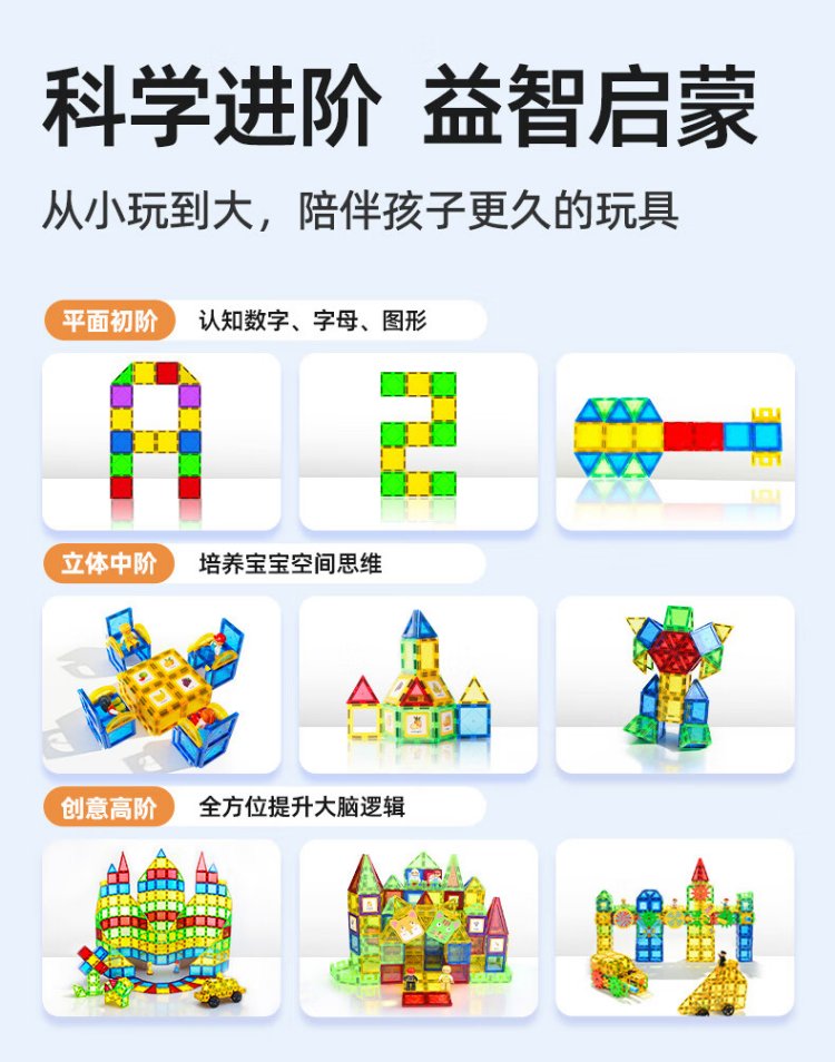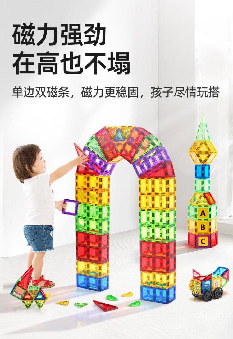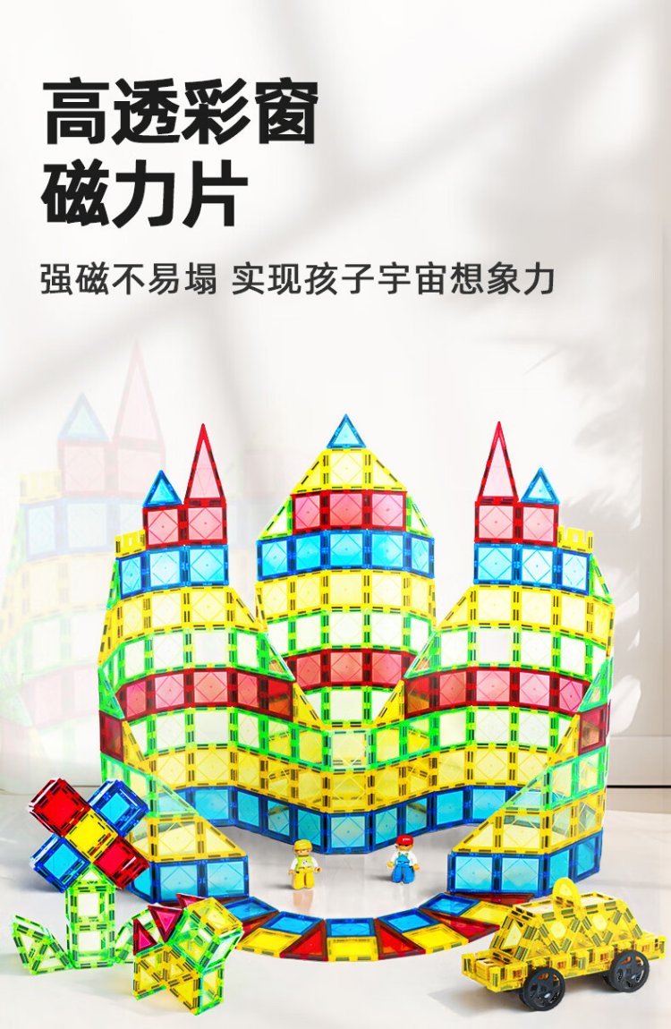 魔磁玩家( MAGPLAYER)儿童玩具彩窗磁力片磁力积木3-6岁男女孩玩具1-3岁礼物100片+2车