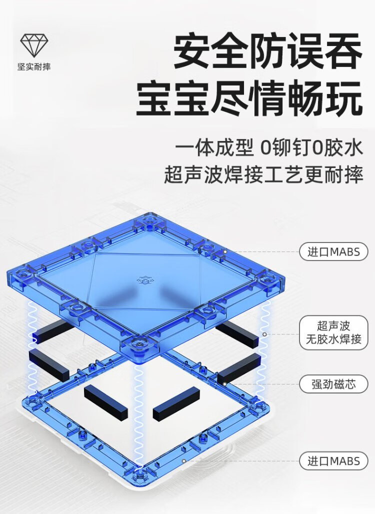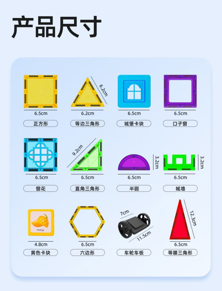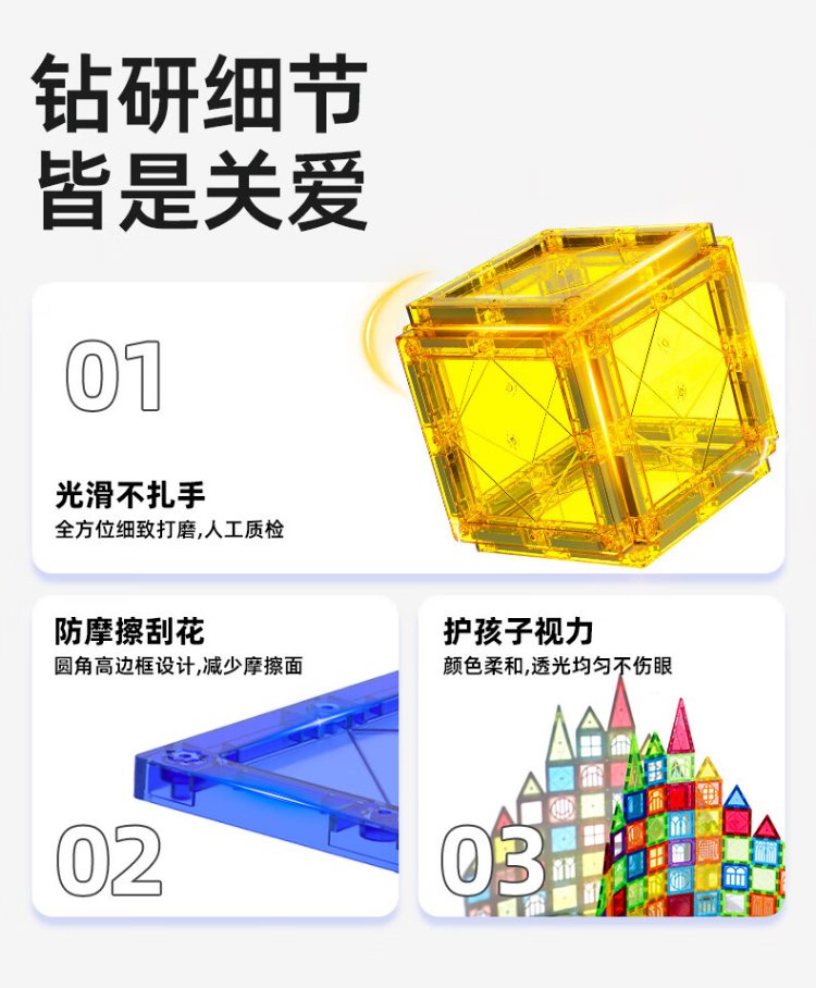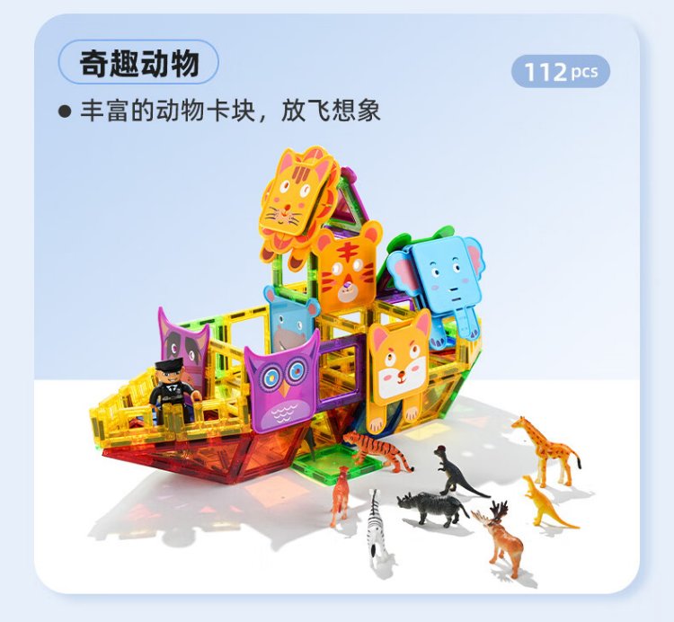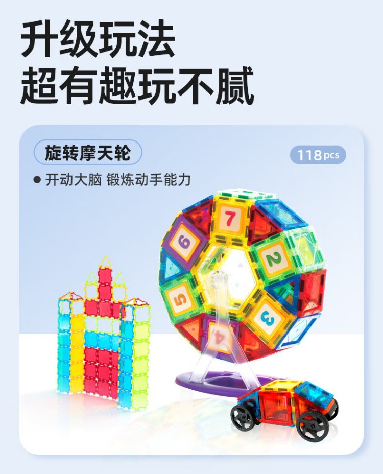 魔磁玩家( MAGPLAYER)儿童玩具彩窗磁力片磁力积木3-6岁男女孩玩具1-3岁礼物100片+2车