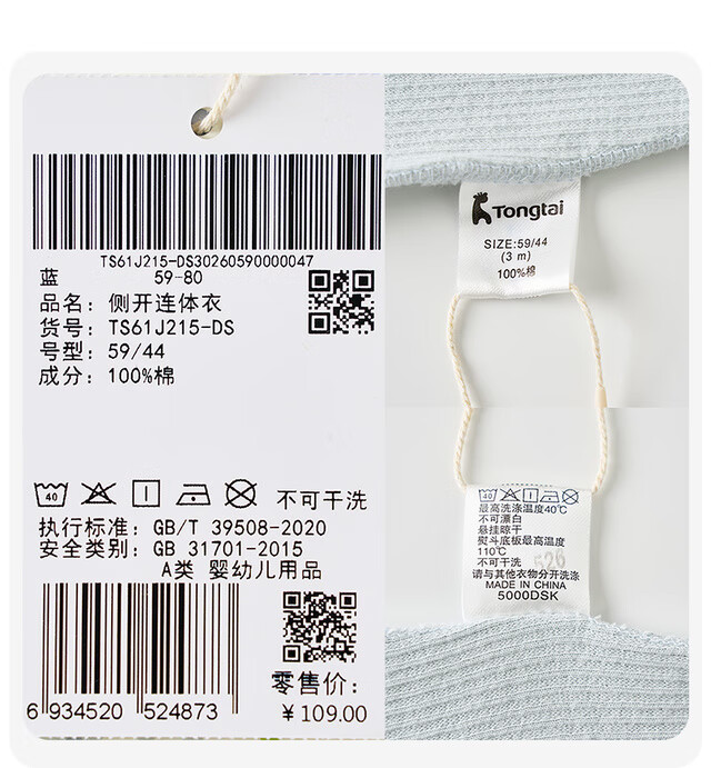 童泰四季1-18月婴儿衣服侧开连体衣TS21J222