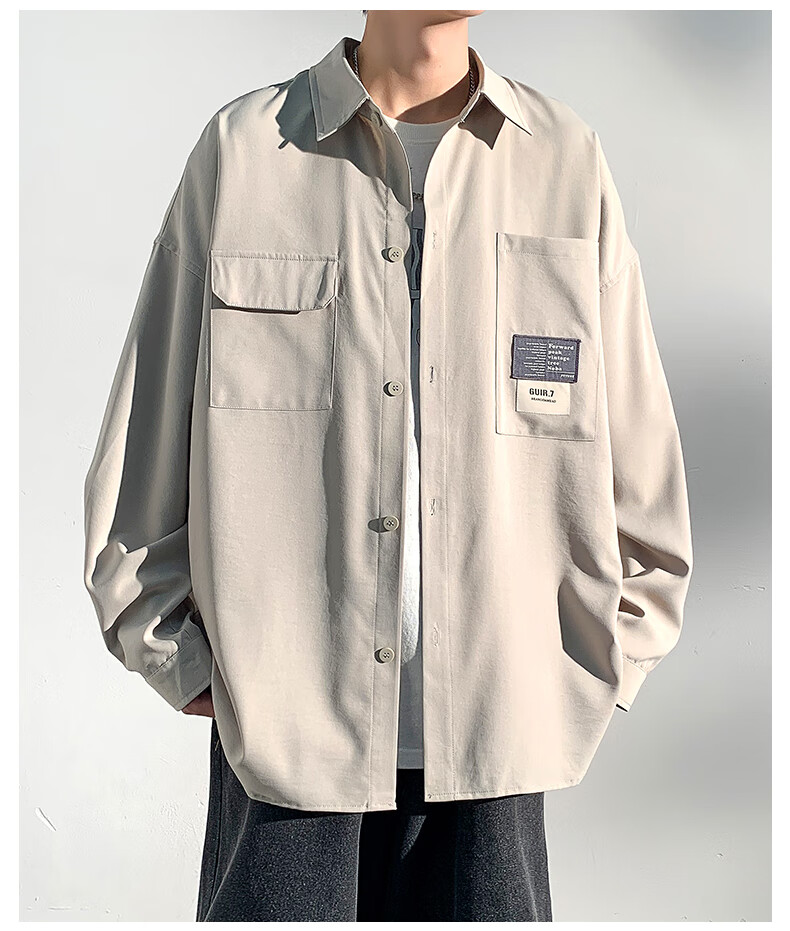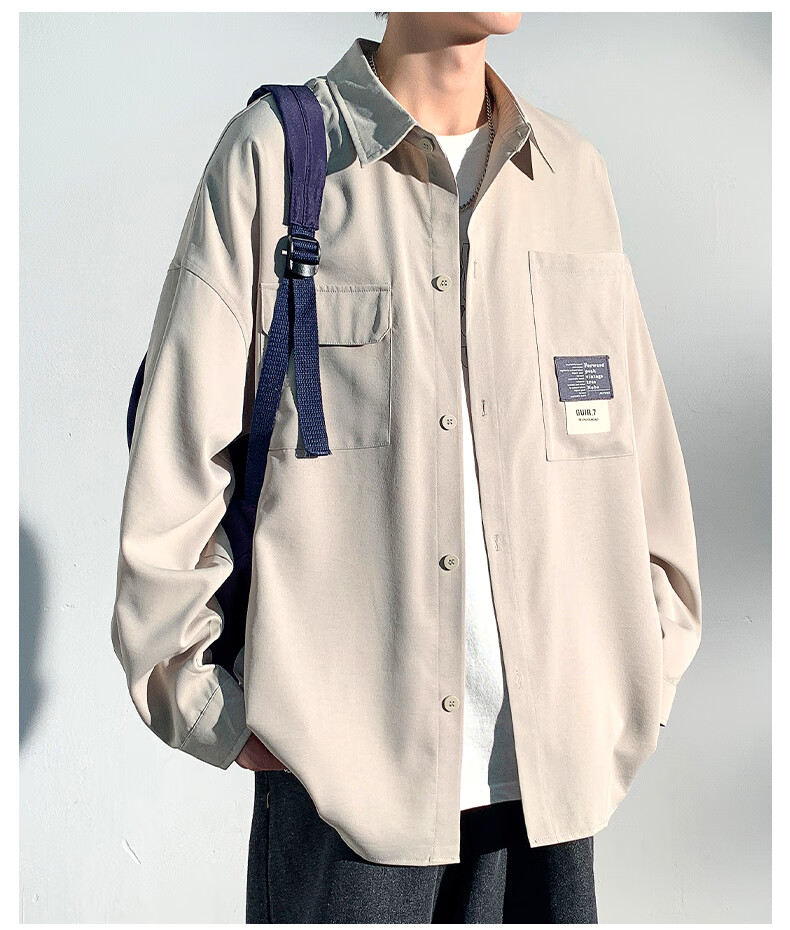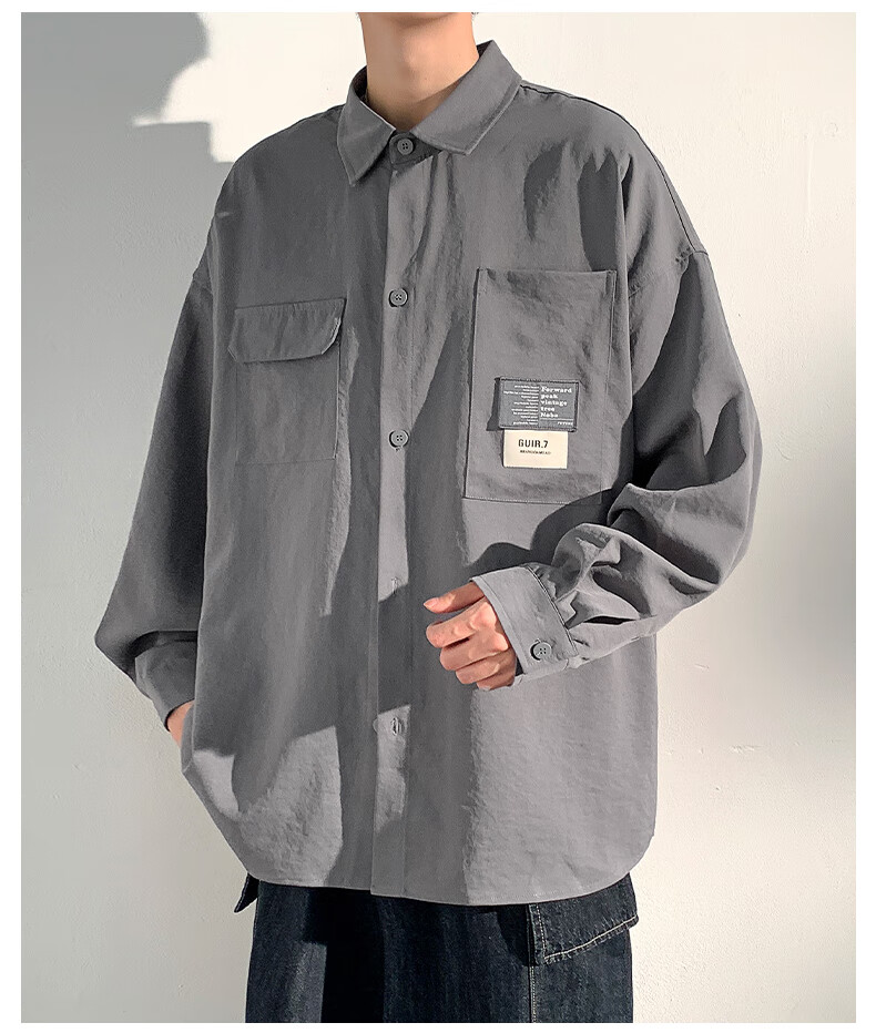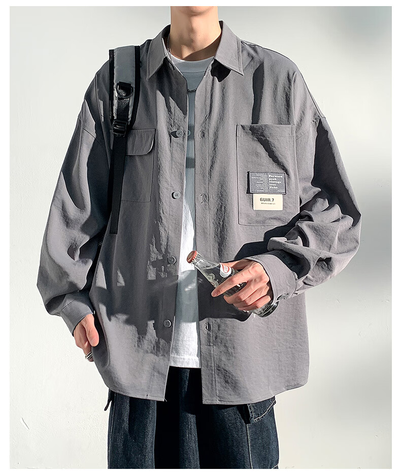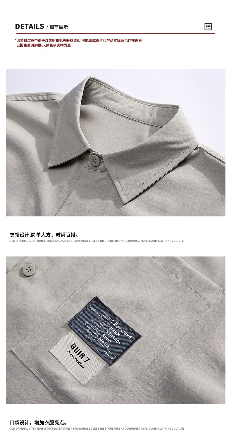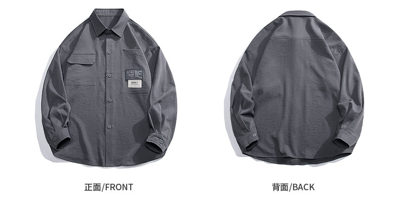 Foss Phil港风长袖衬衫外套男士秋冬季休闲宽松工装打底上衣7303浅灰XL