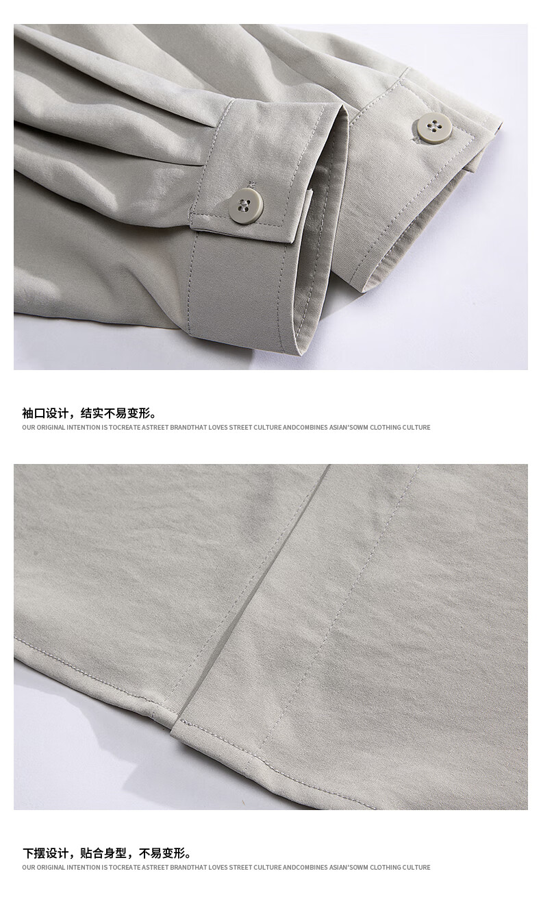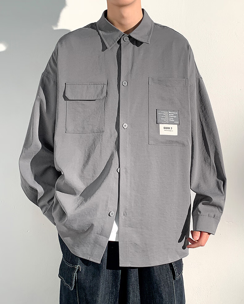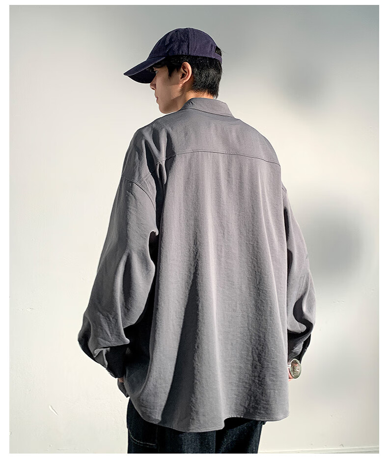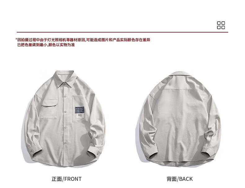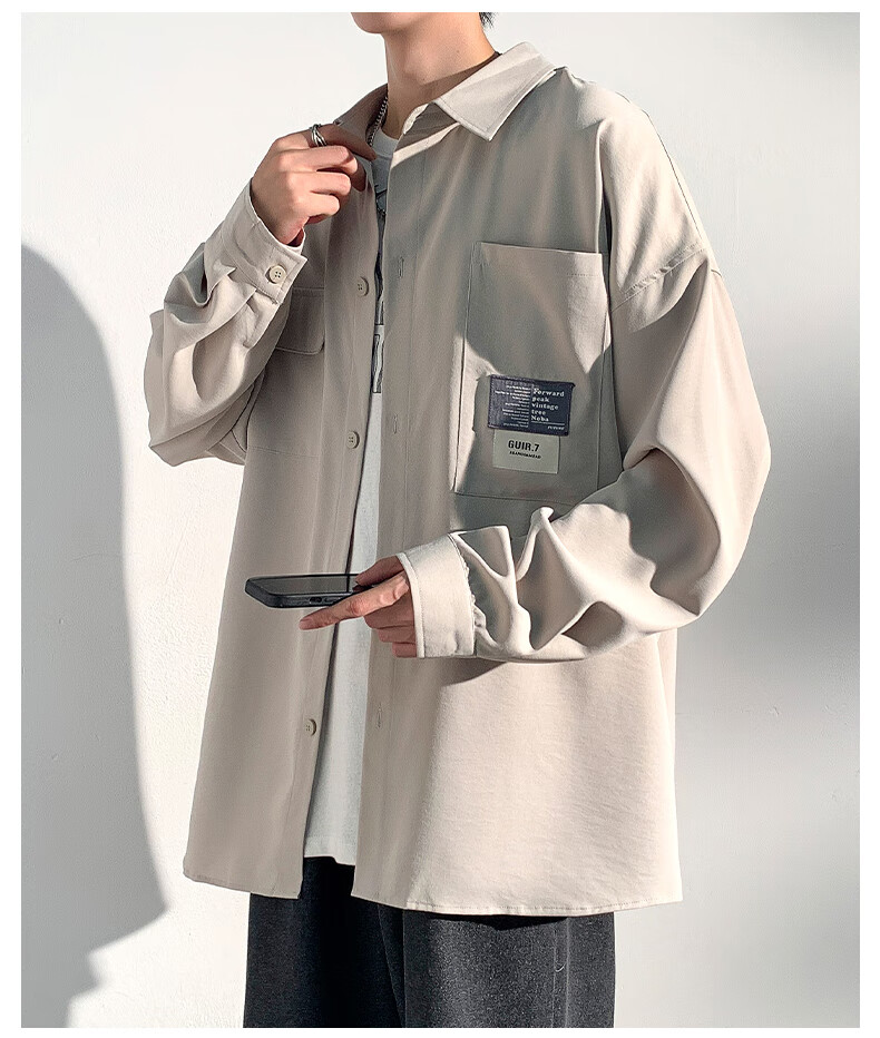 Foss Phil港风长袖衬衫外套男士秋冬季休闲宽松工装打底上衣7303浅灰XL