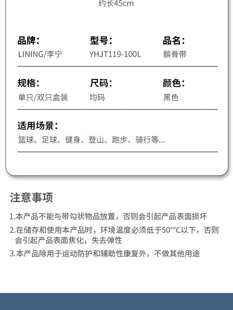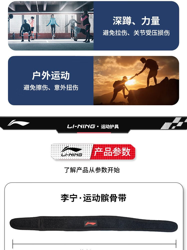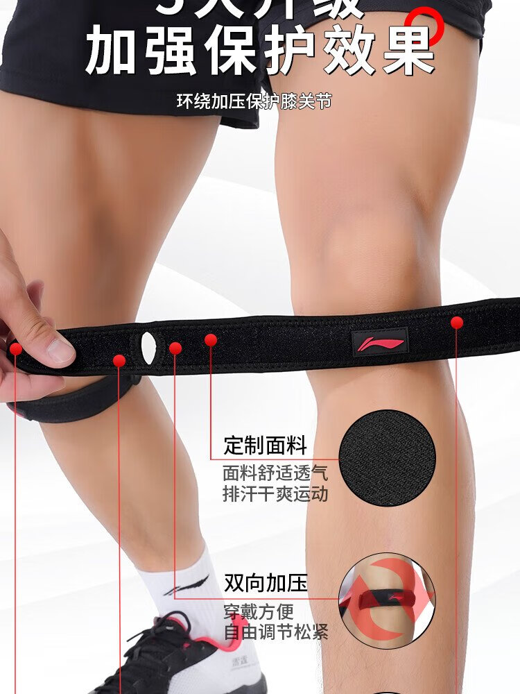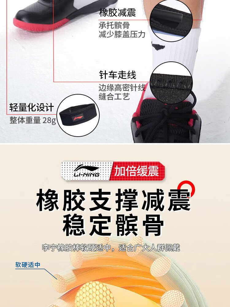 Li Ning patella belt running sports fitness pressurized fixed protective sports knee joint protective gear single pack L
