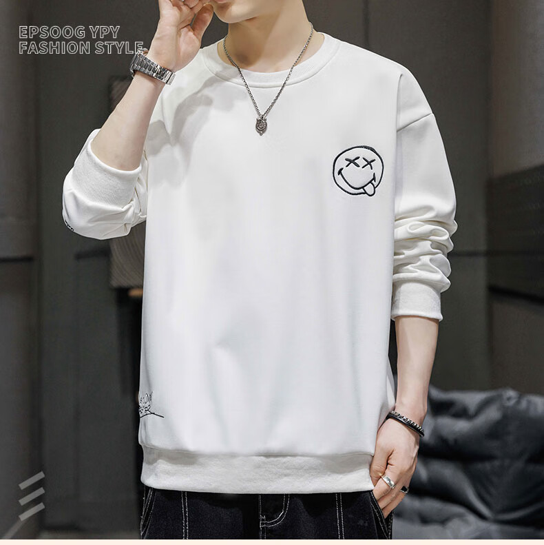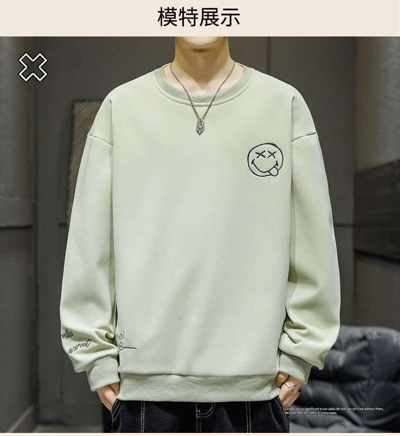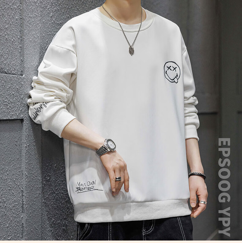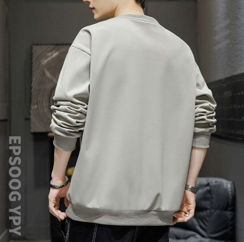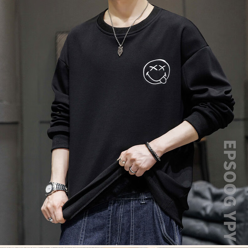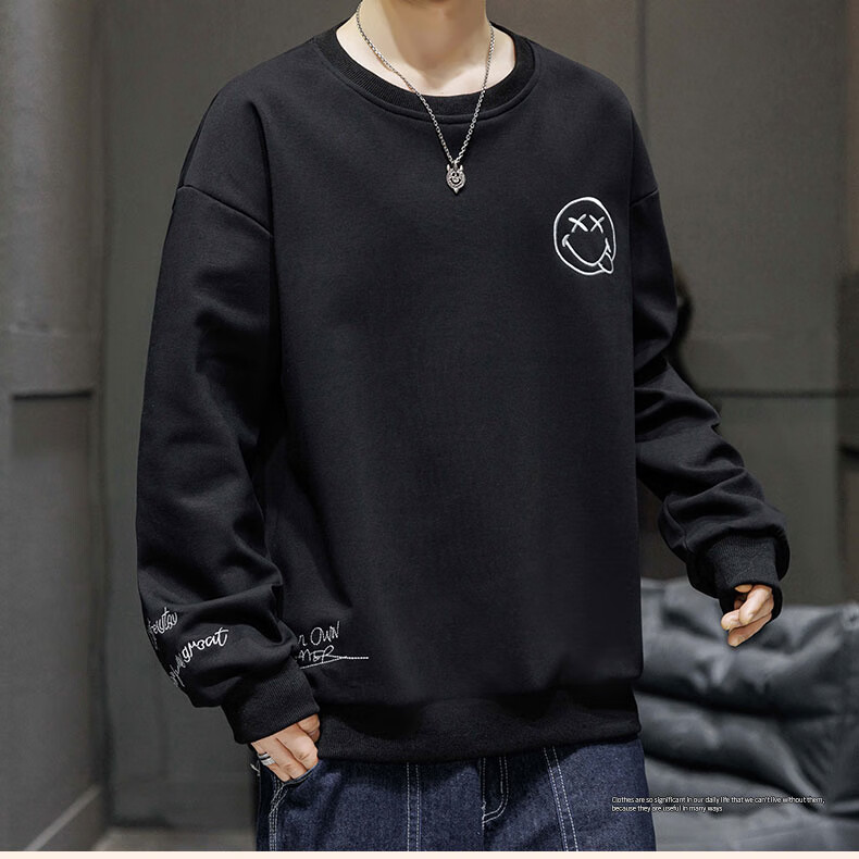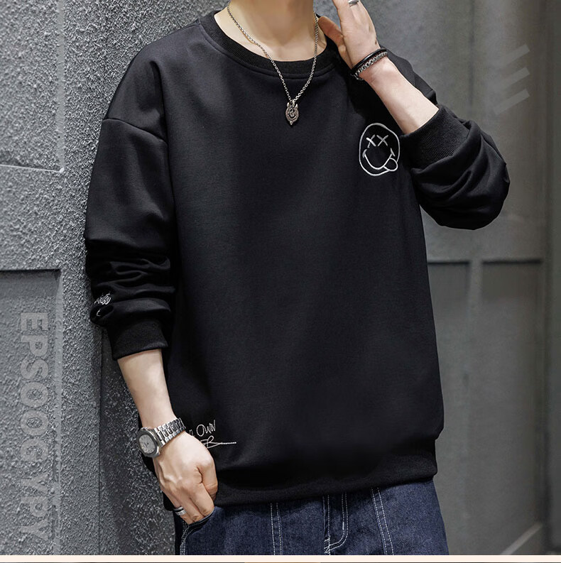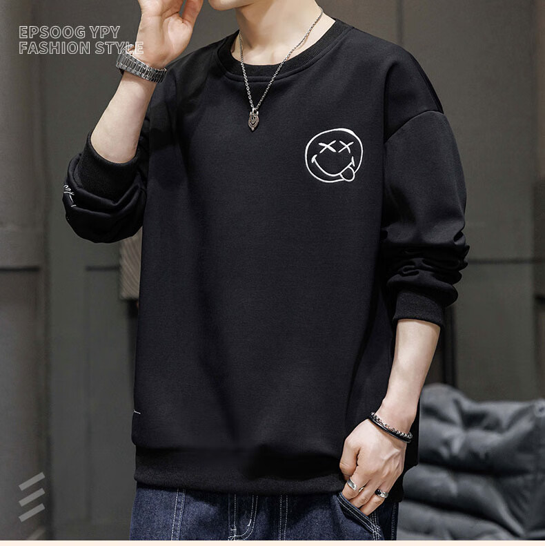 Number one youth sweatshirt men's autumn and winter trendy loose plus size men's casual round neck long-sleeved T-shirt tops for men black 6XL