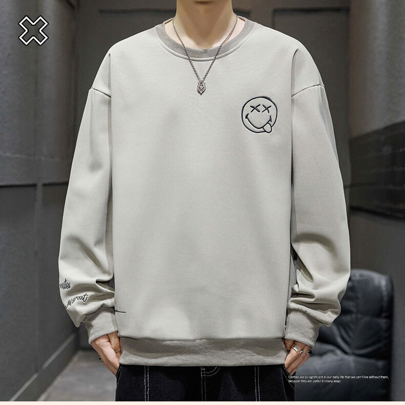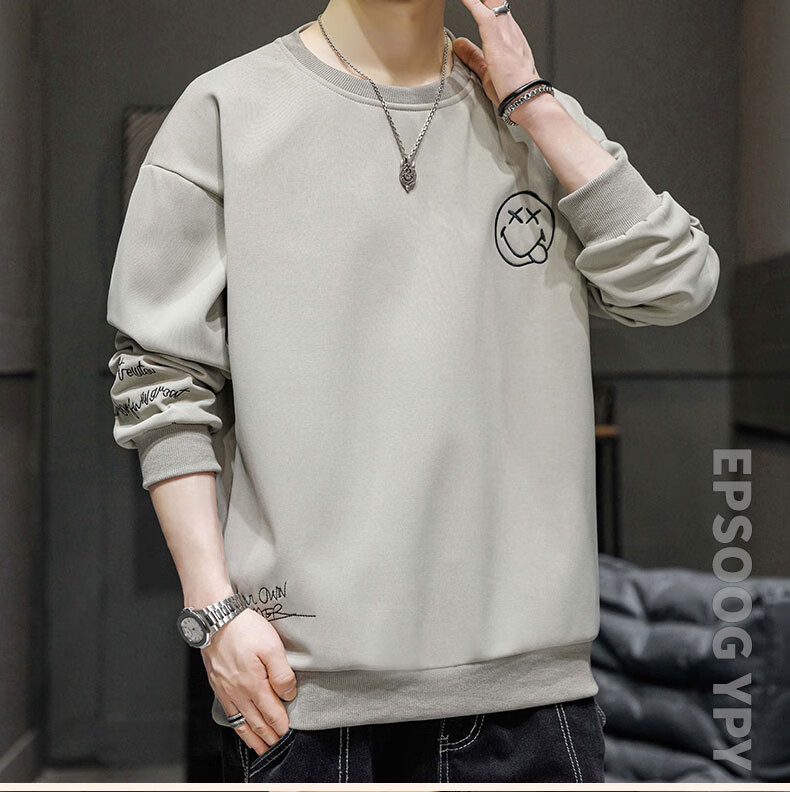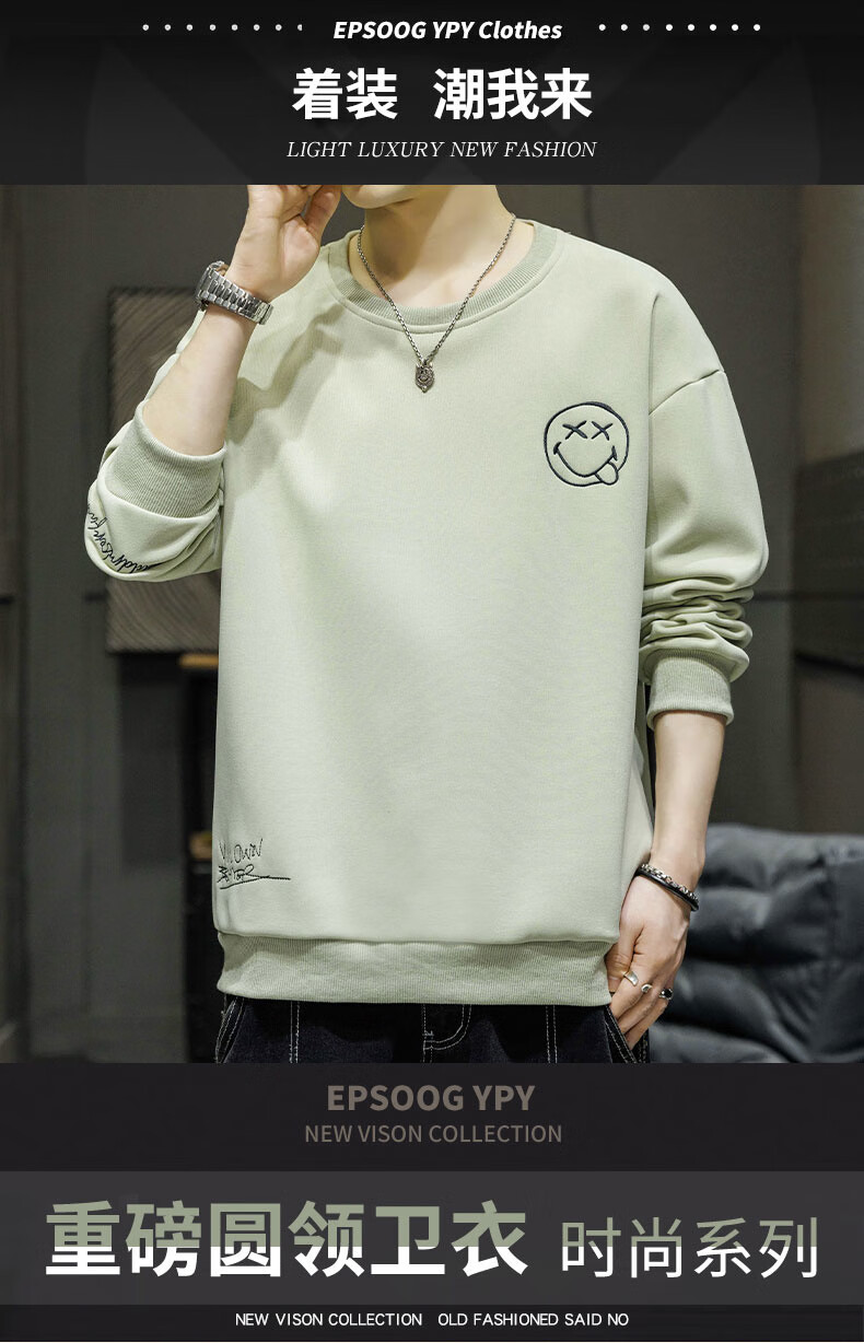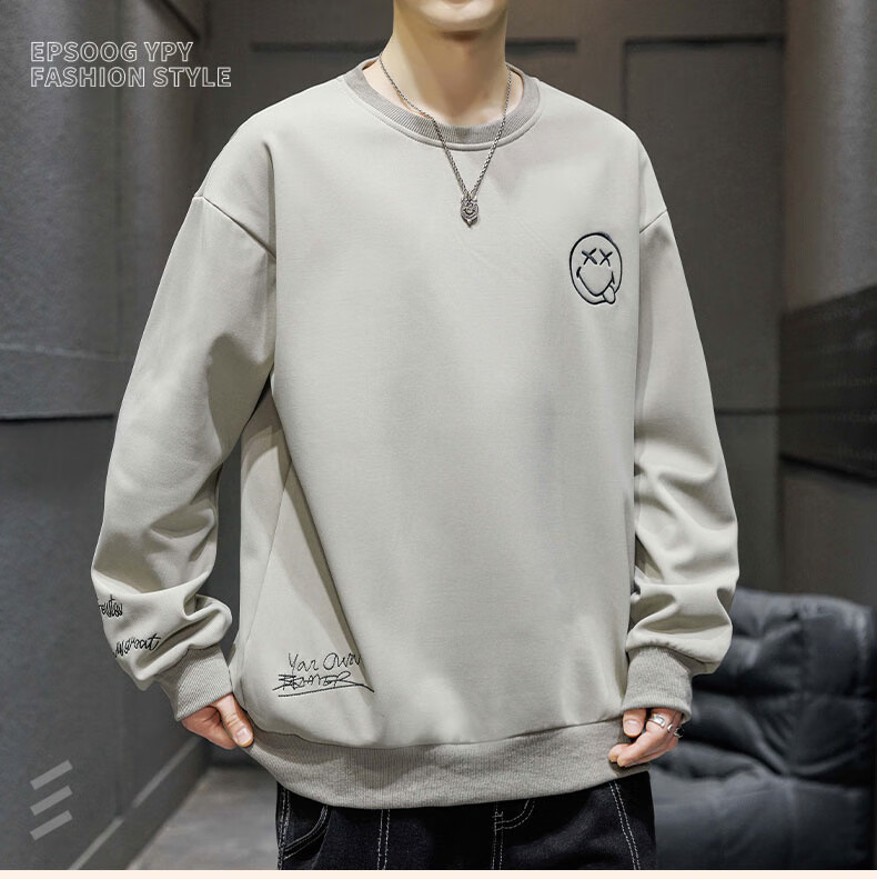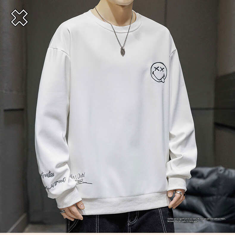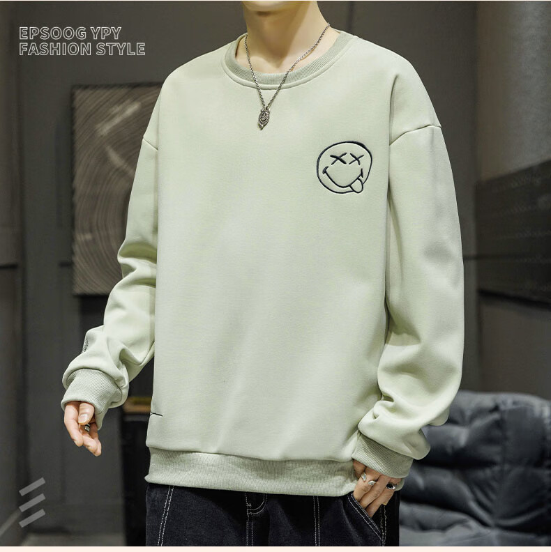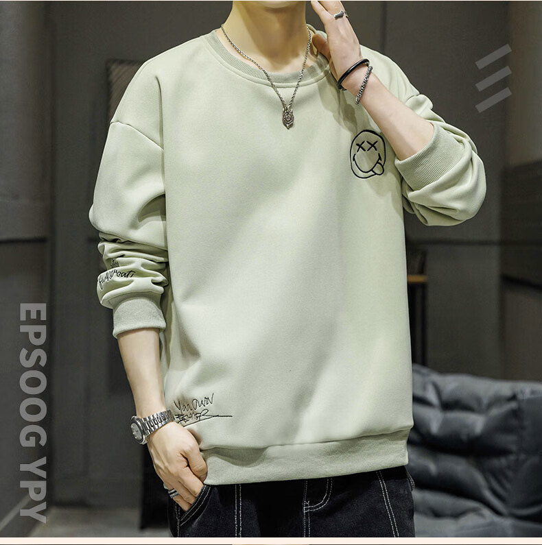 Number one youth sweatshirt men's autumn and winter trendy loose plus size men's casual round neck long-sleeved T-shirt tops for men black 6XL