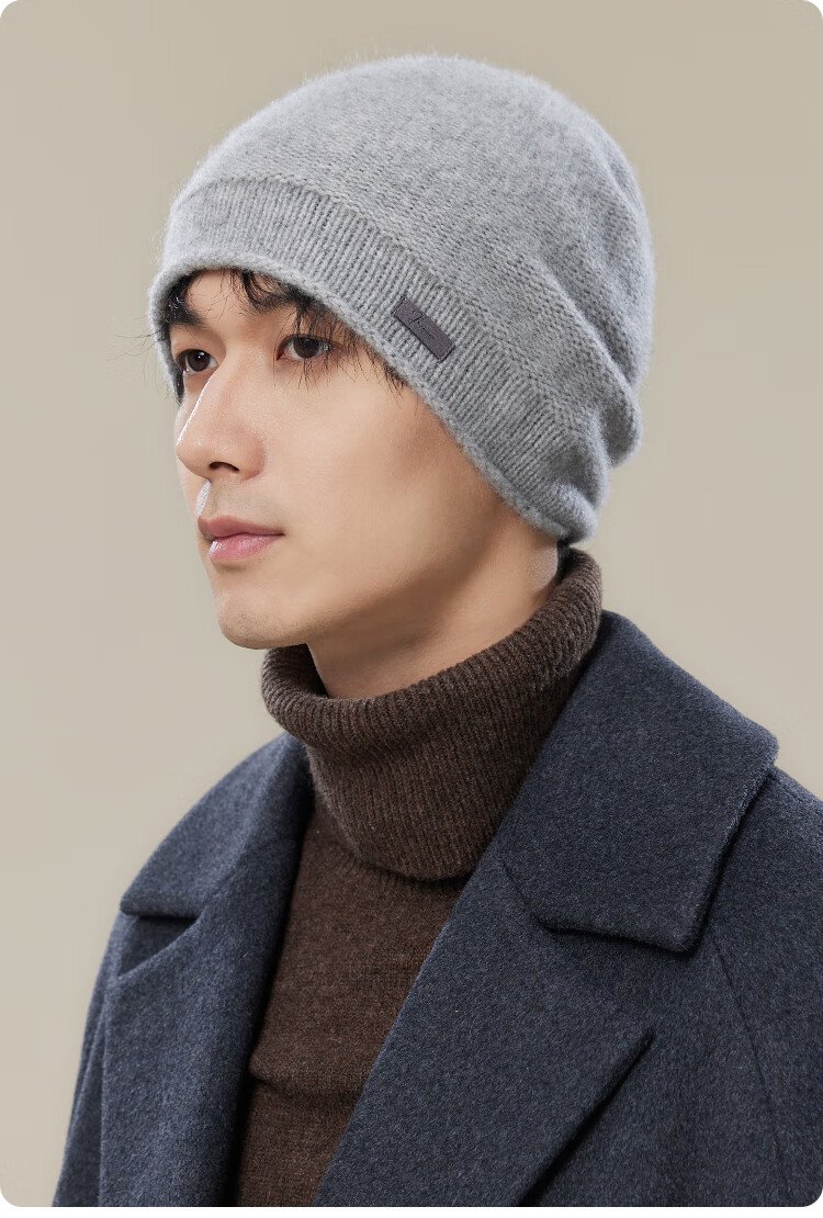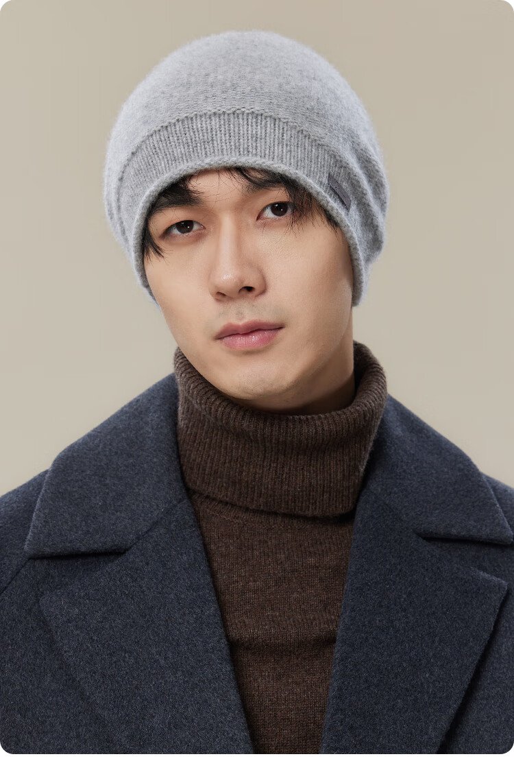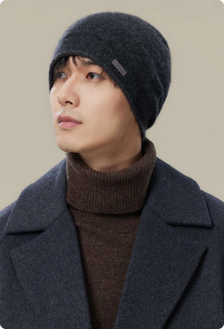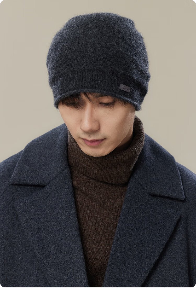 JIUMU pure cashmere warm knitted woolen hat Baotou cold hat autumn and winter outdoor winter hat winter ear protection cold hat for men