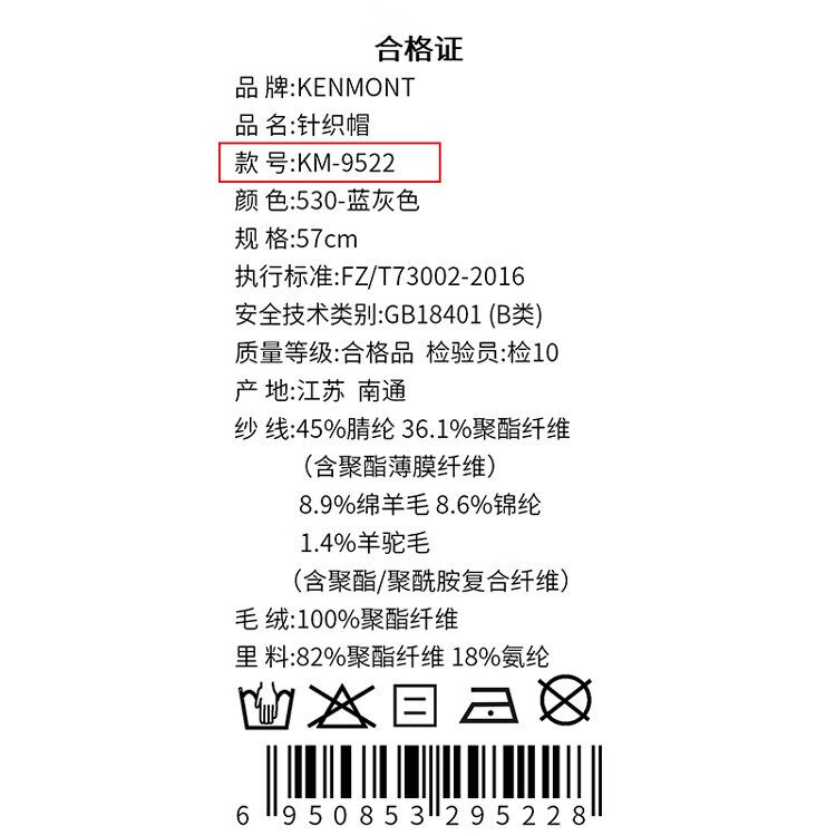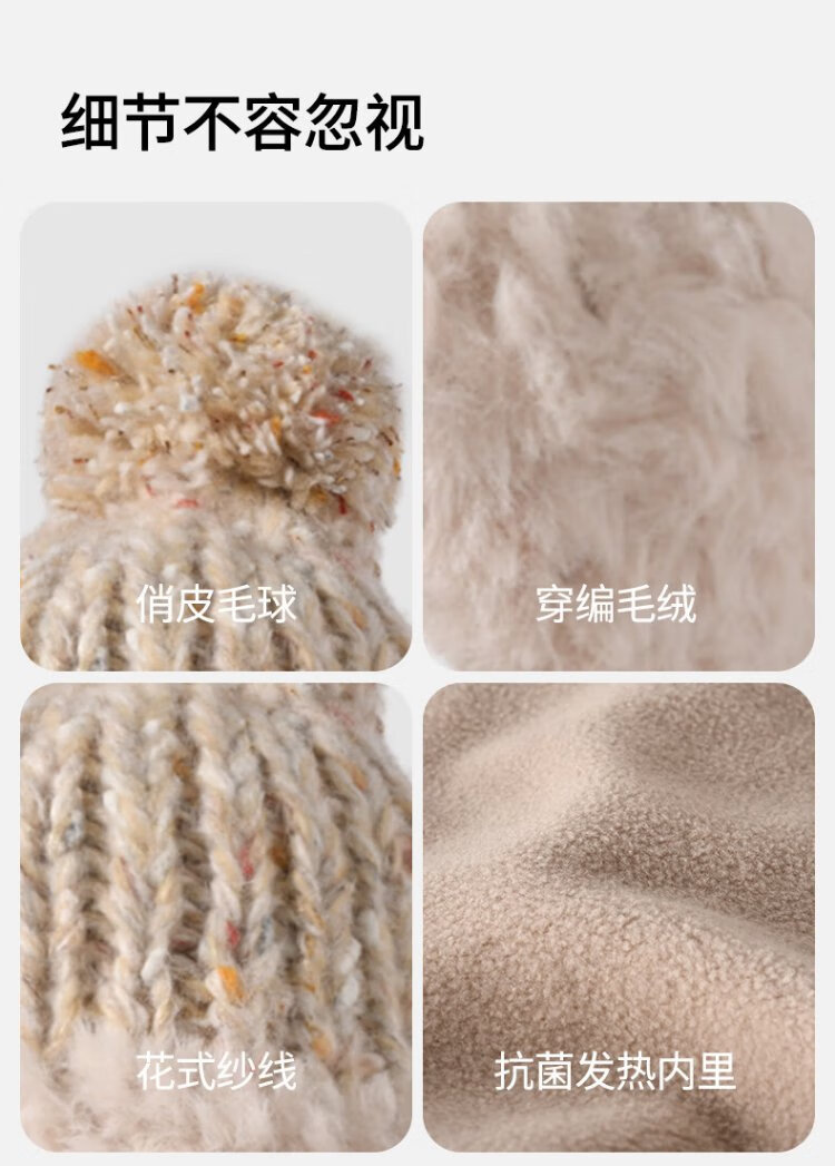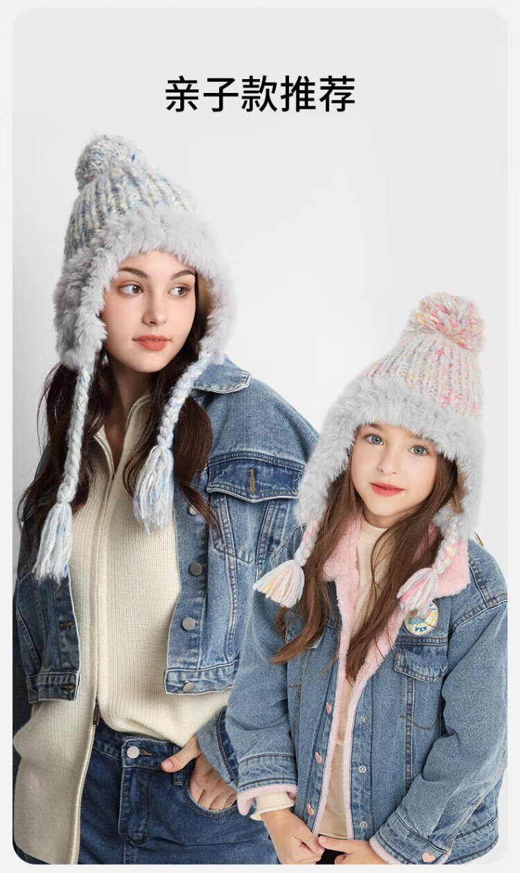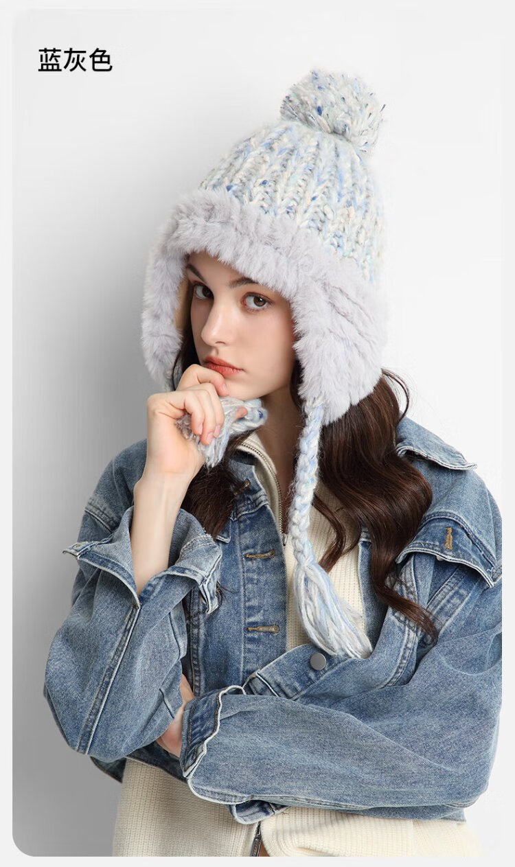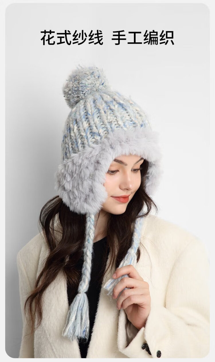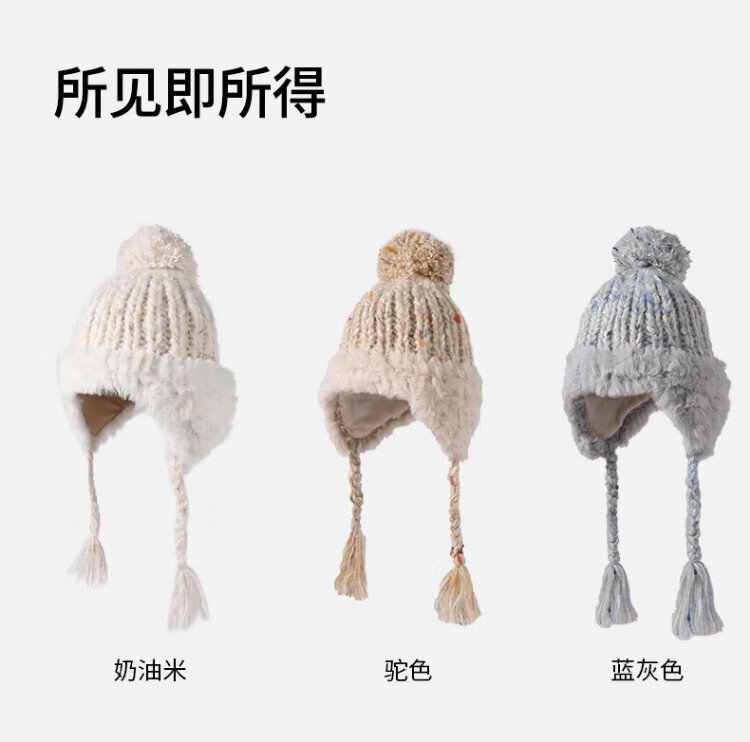卡蒙(Kenmont)手工编织流苏羊毛毛线帽女冬加绒加厚护耳保暖毛绒针织帽km-9522