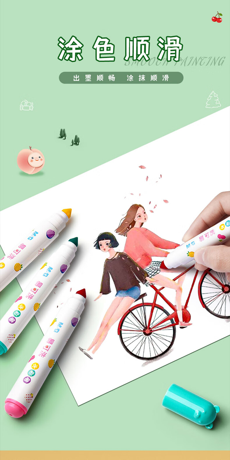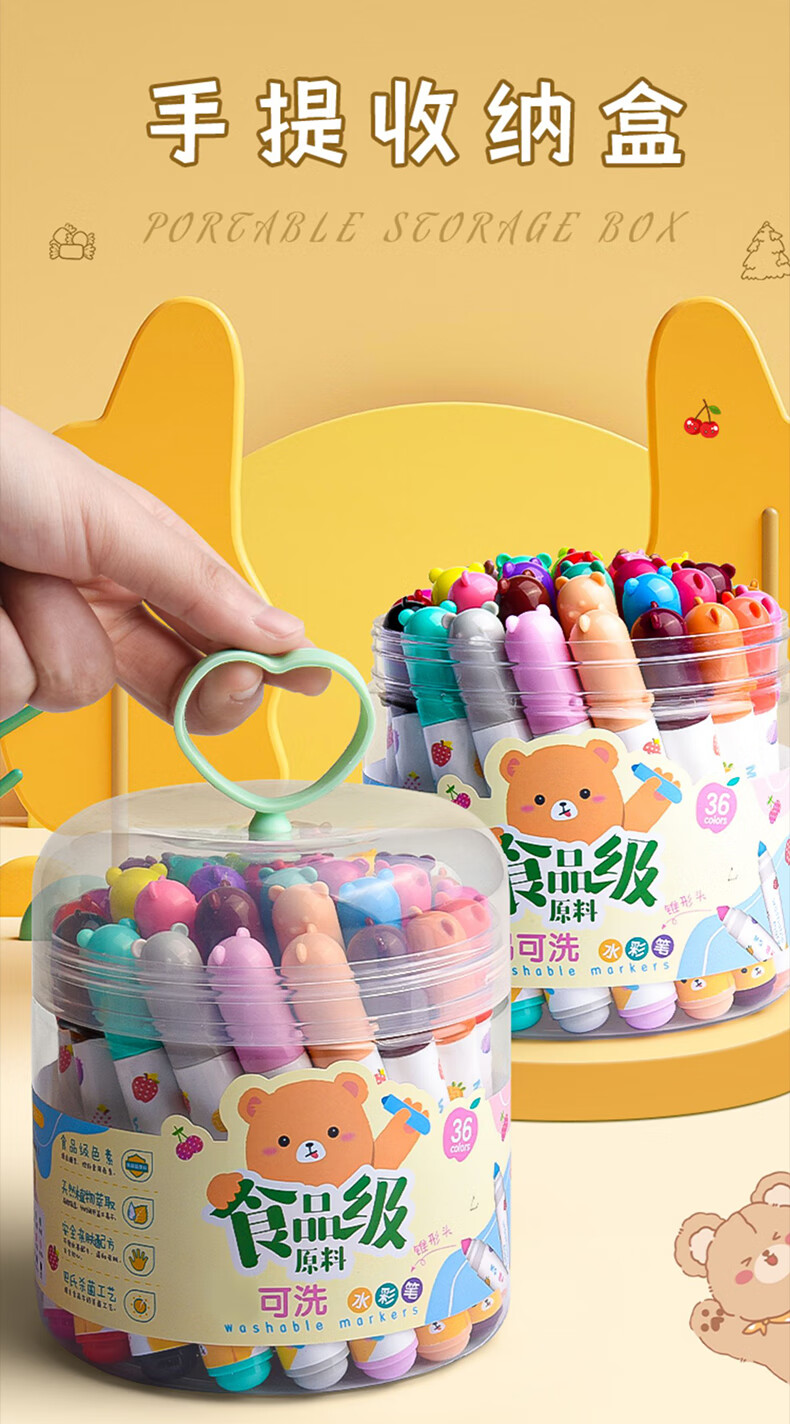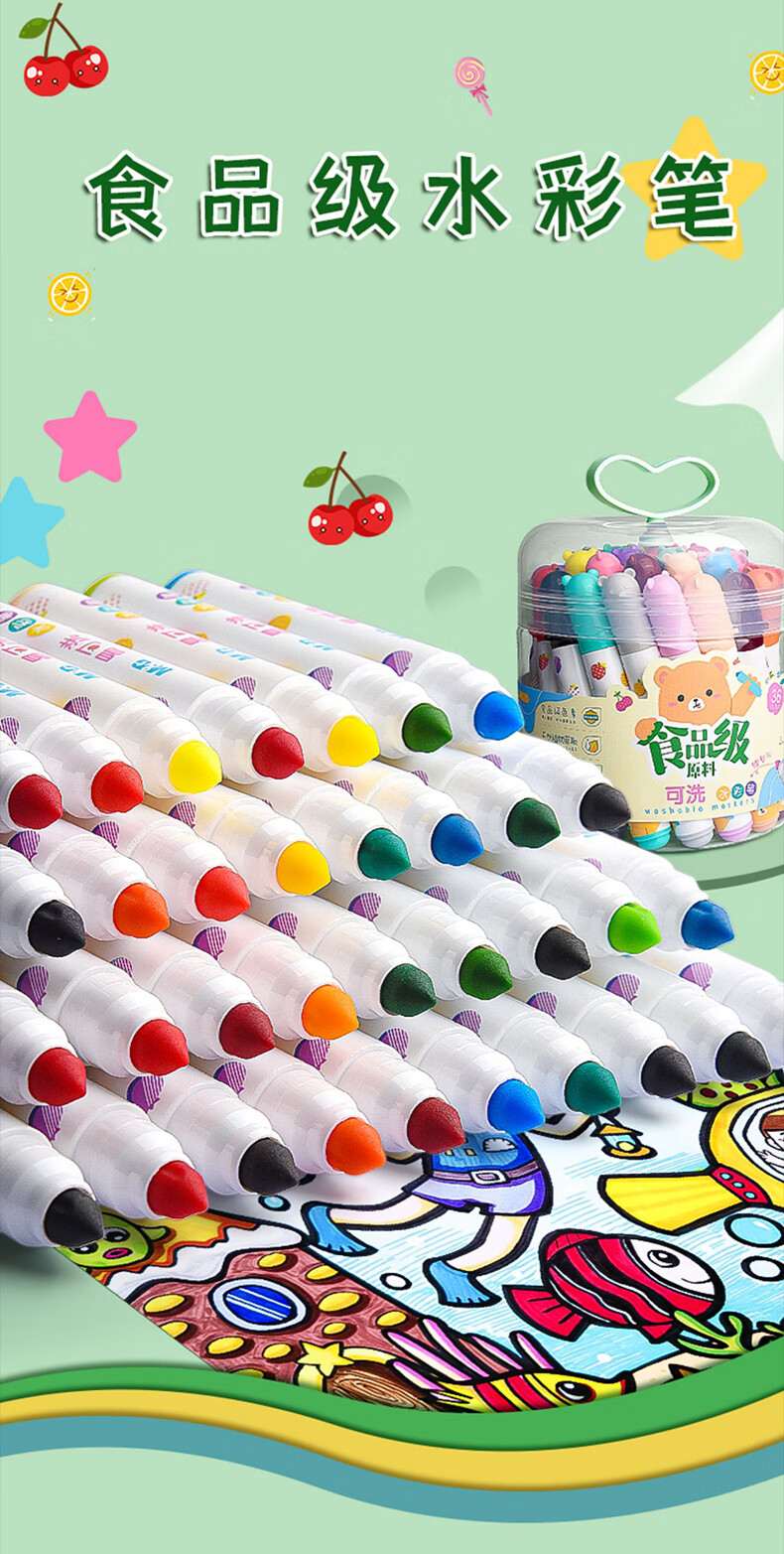 M&G stationery 24 colors food-grade children's watercolor pens anti-indentation tapered pen painting children's safety painted graffiti birthday gift ACP901Z6