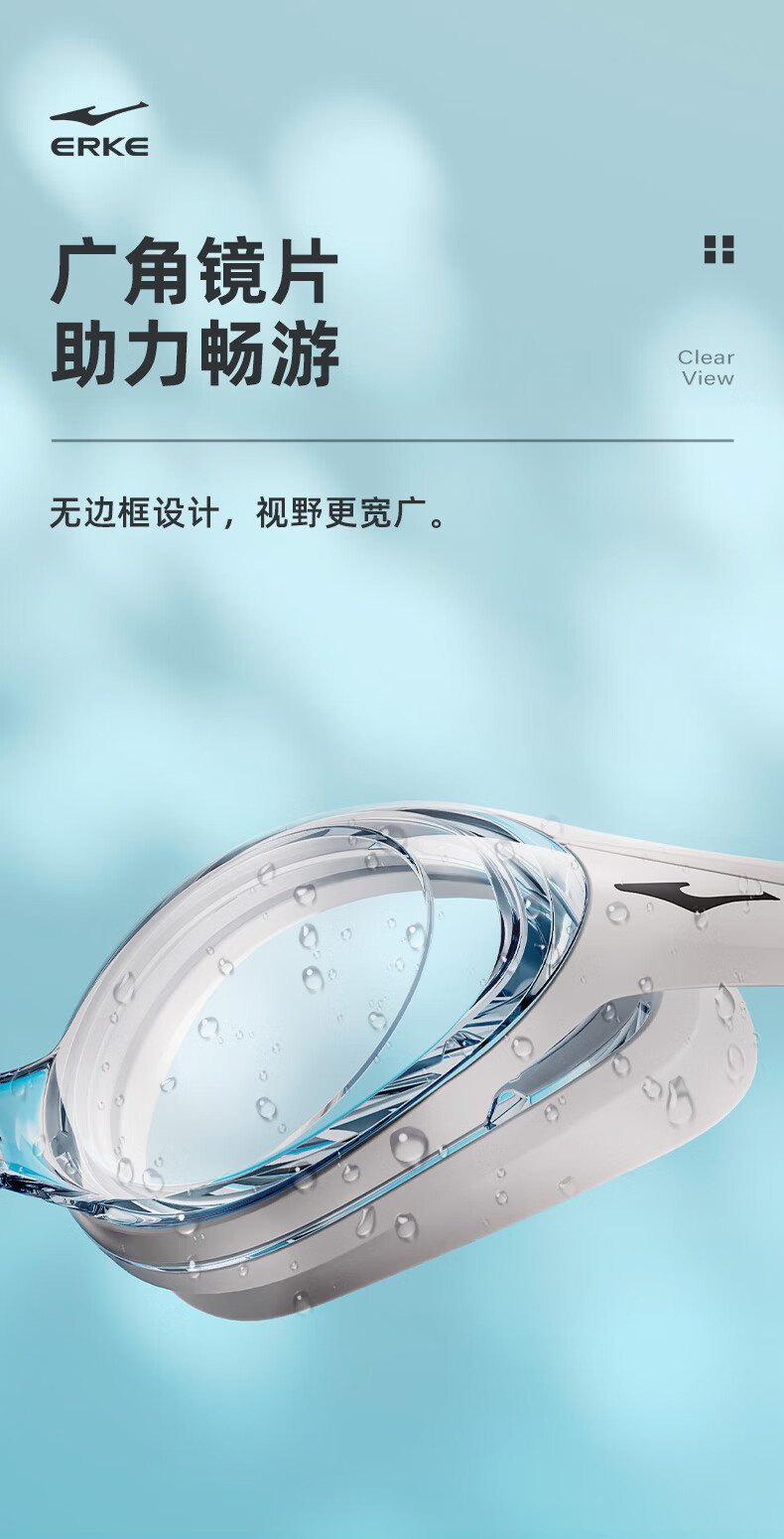 Hongxing Erke (ERKE) swimming goggles high-definition waterproof and anti-fog flat glasses for adults men and women simple professional sports swimming and diving glasses