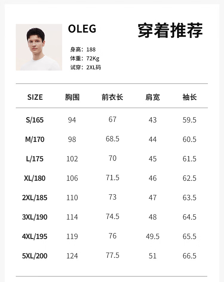 China (cm) 165 / 88-90 170 / 96-98 175 / 108-110 180 / 118-122 185 / 126-130