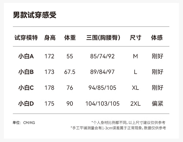China (cm) 160-165/84-86 165-170 / 88-90 167-172 / 92-96 168-173 / 98-102 170-176 / 106-110