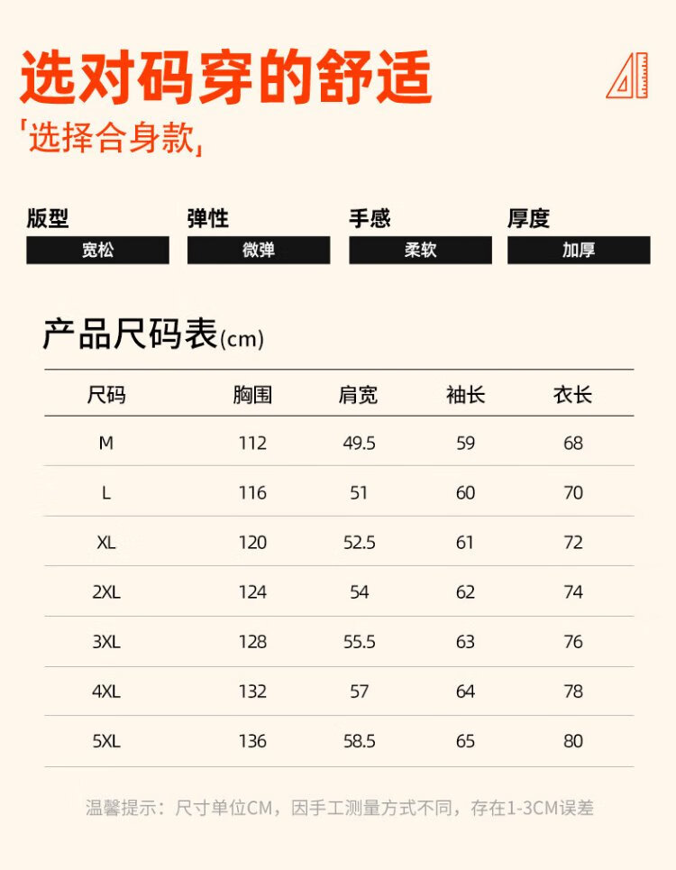 China (cm) 165 / 88-90 170 / 96-98 175 / 108-110 180 / 118-122 185 / 126-130