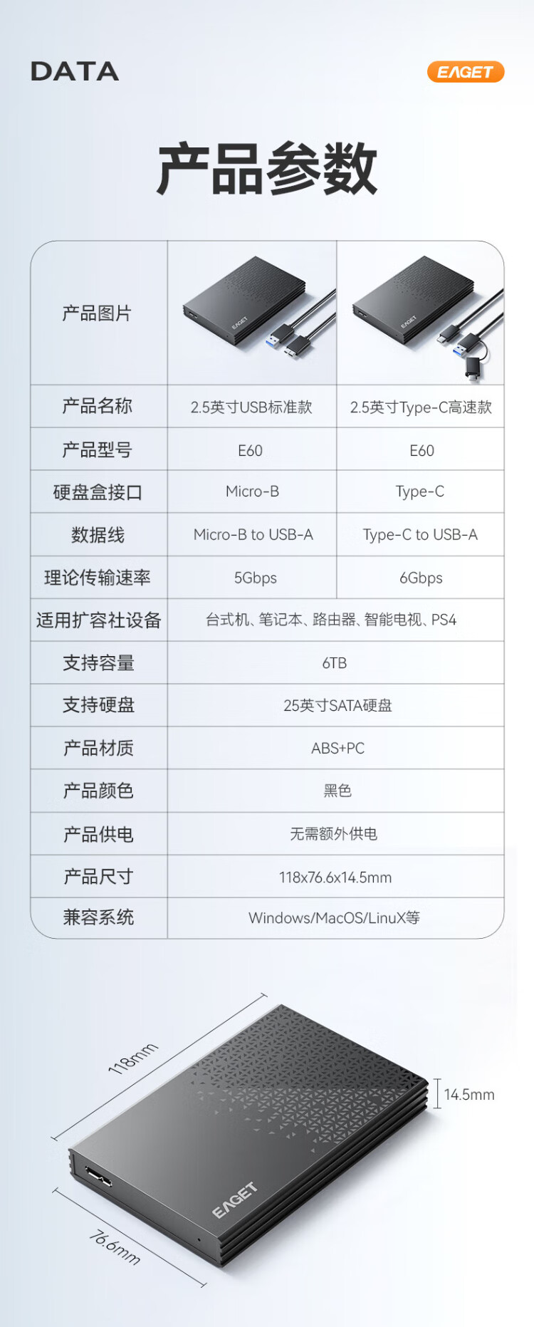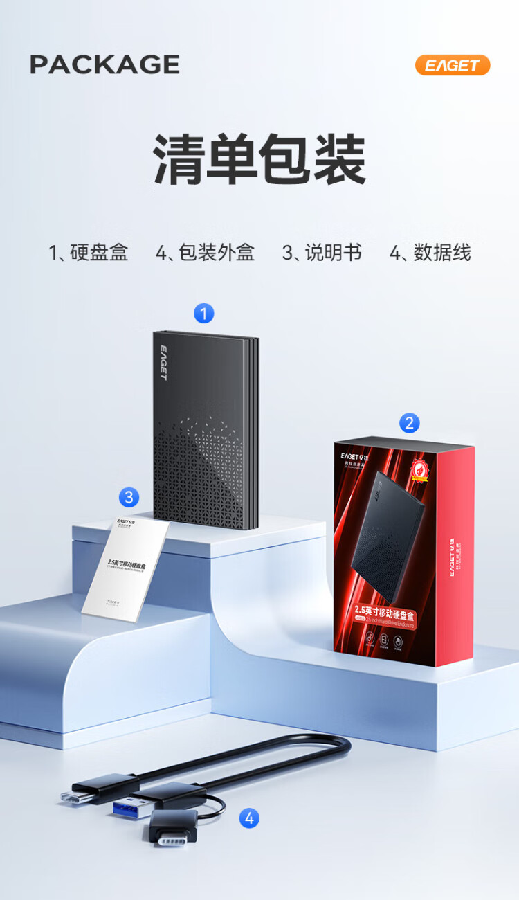 忆捷USB3.0移动硬盘盒2.5英寸外置硬盘盒适用笔记本电脑台式机外接SATA串口SSD固态机械硬盘盒子