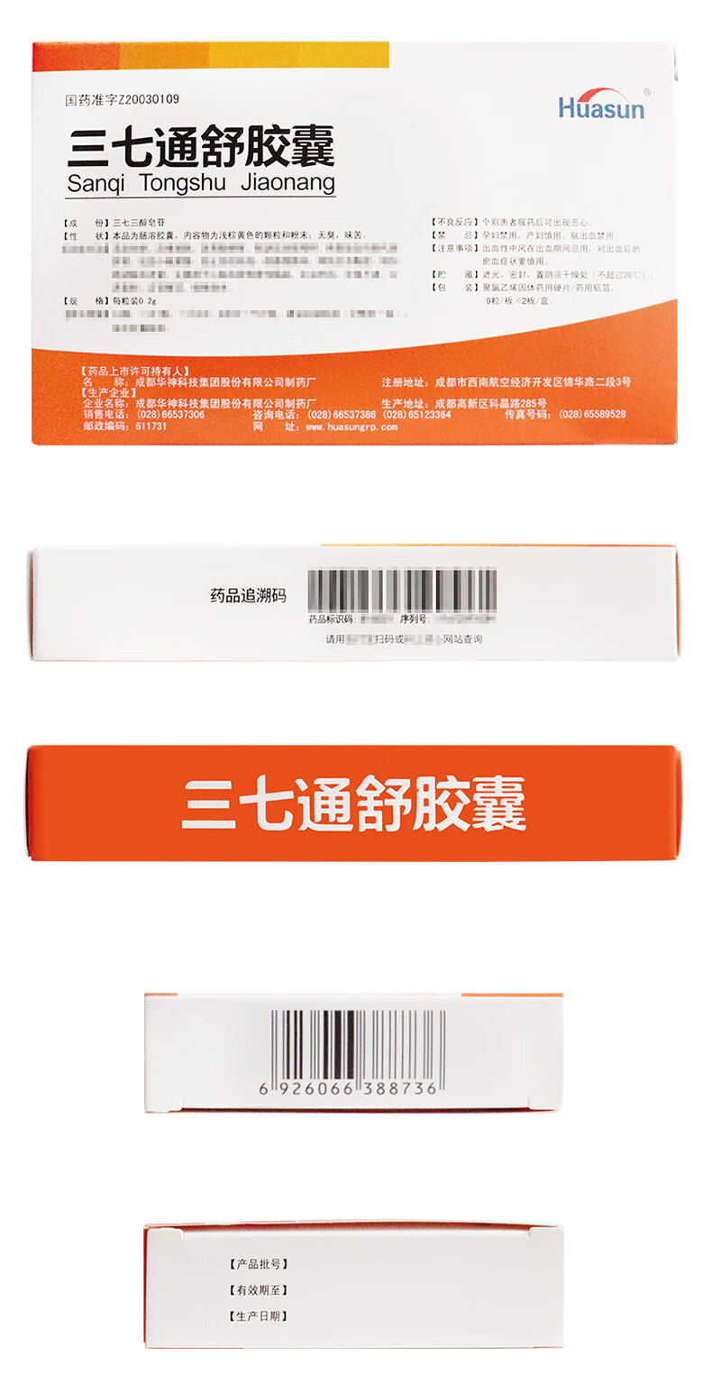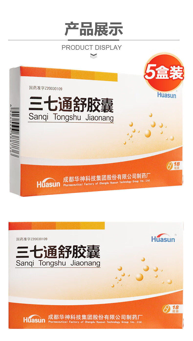 [Huasun] 三七通舒胶囊0.2g*18粒/盒 5盒装