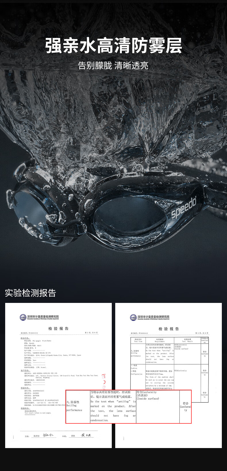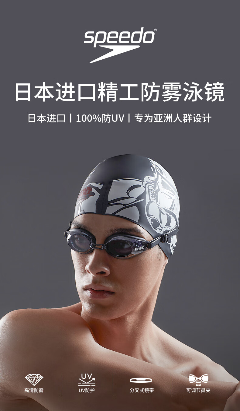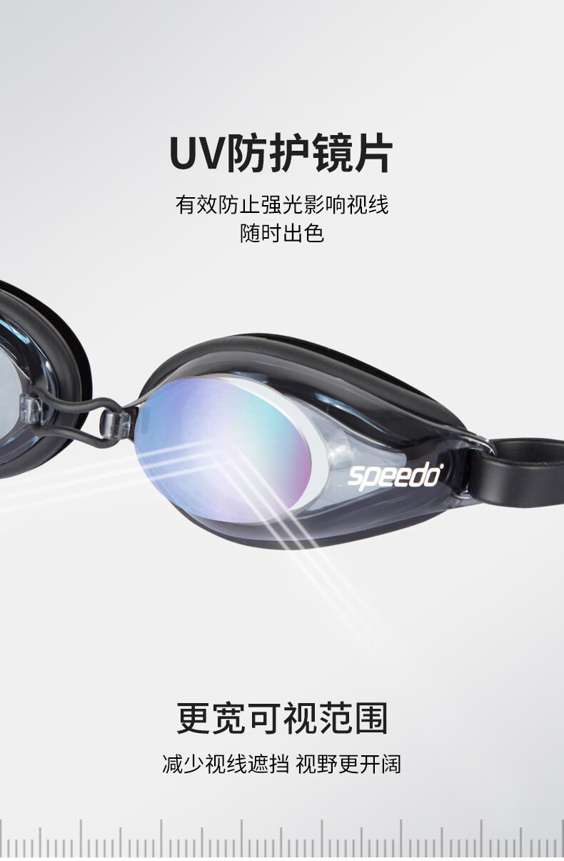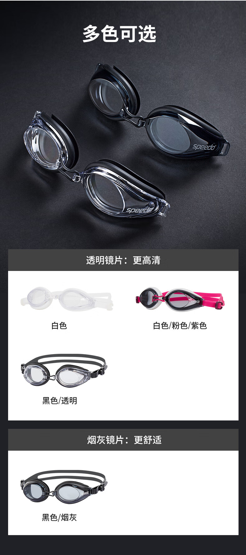 速比涛(Speedo)Edge进口精工泳镜高清防水防雾游泳训练装备男女通用 黑色/烟灰