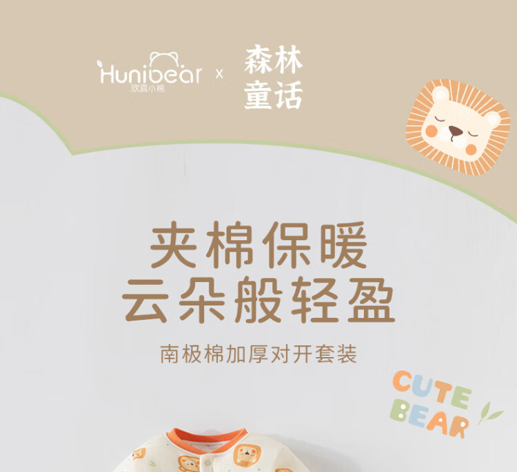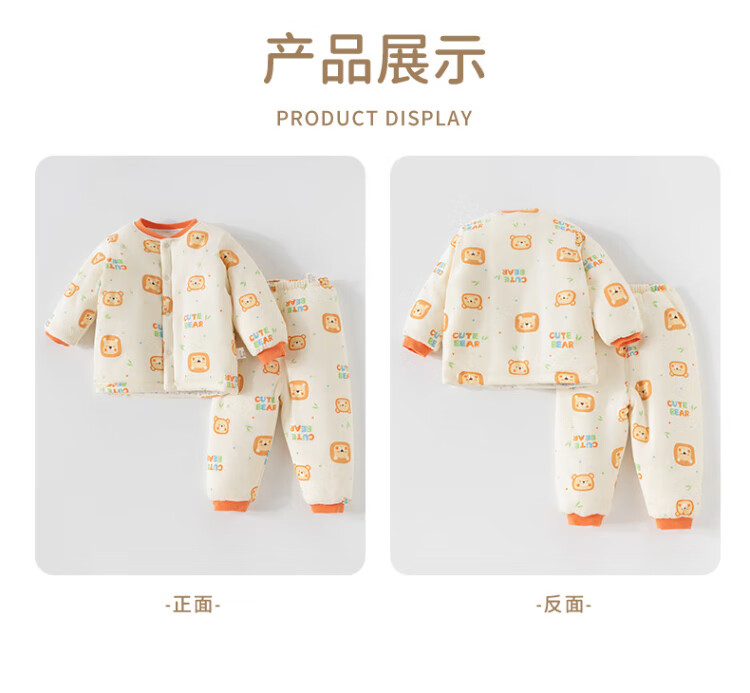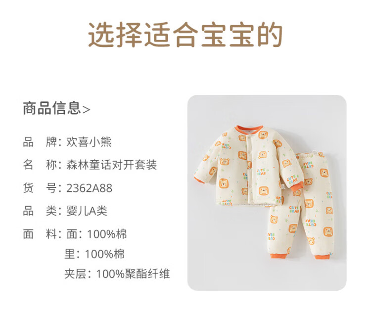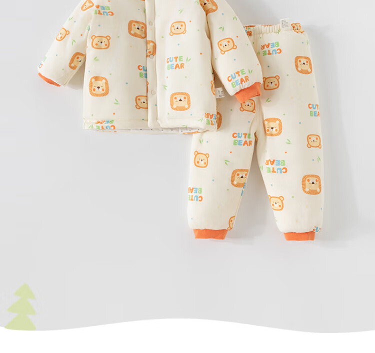 欢喜小熊婴儿秋冬长袖套装宝宝冬款夹棉保暖分体衣服新生儿两件套