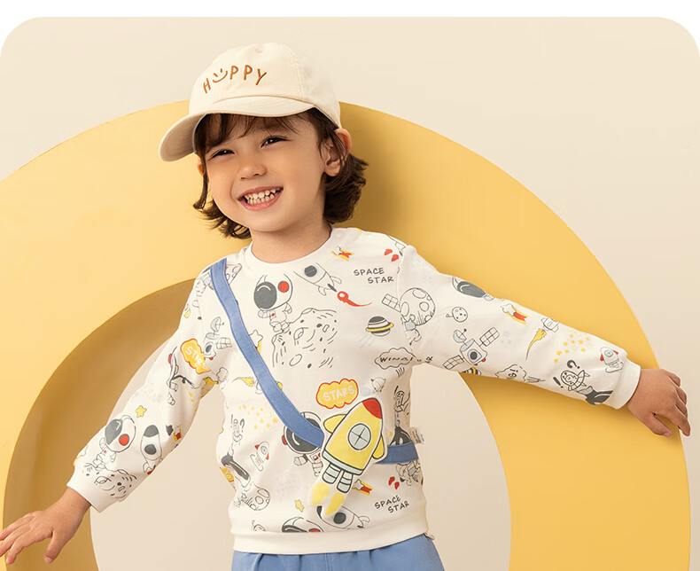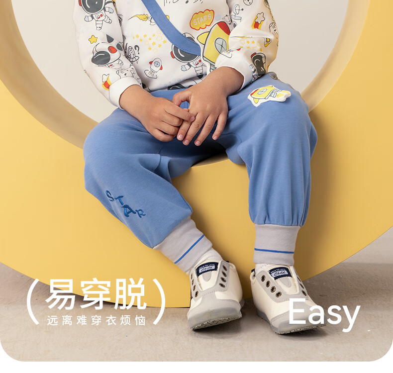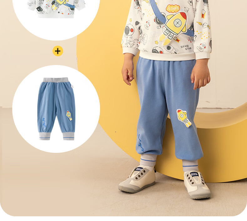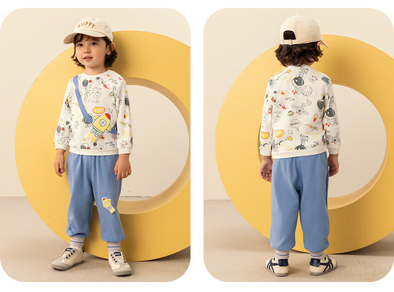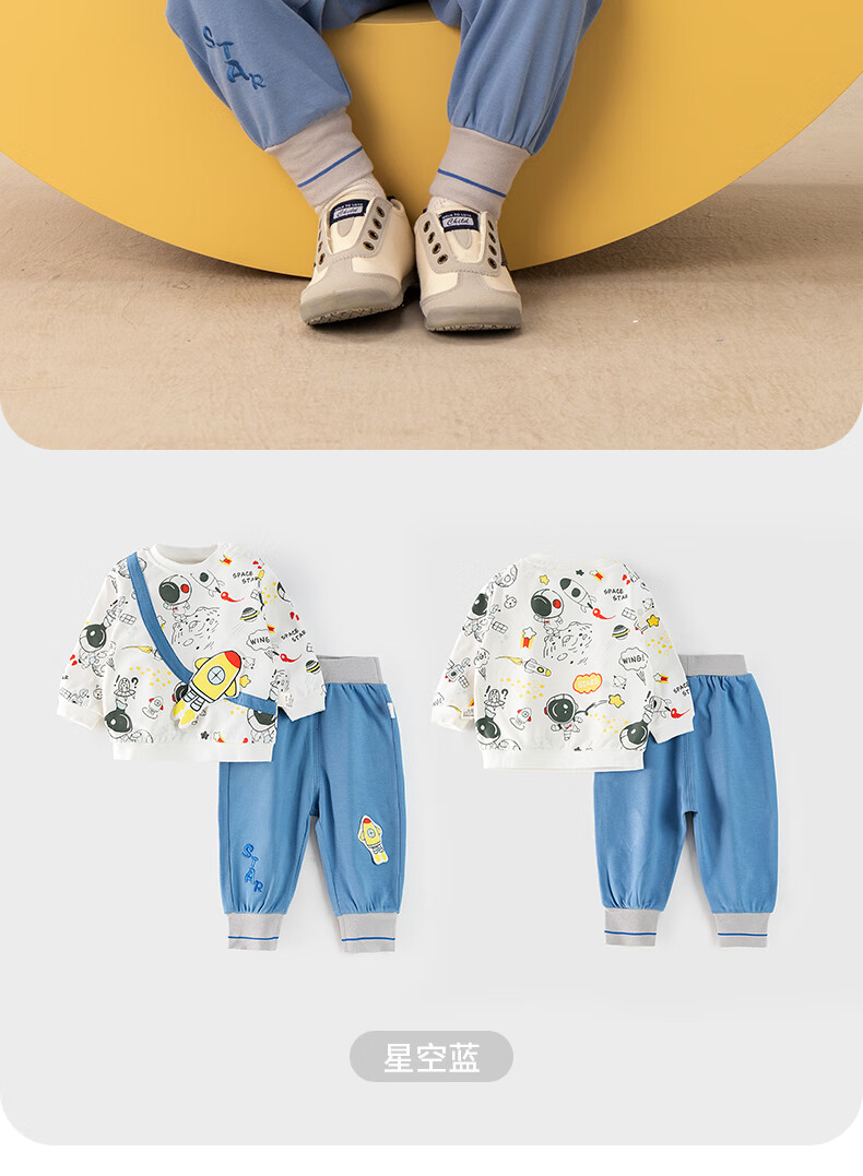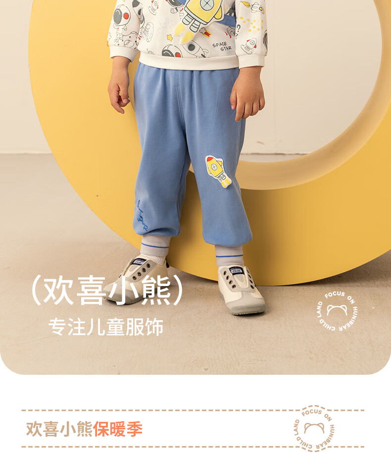 欢喜小熊男宝宝套装秋季外出纯棉A类小童春秋分体上衣裤子两件套婴儿衣服