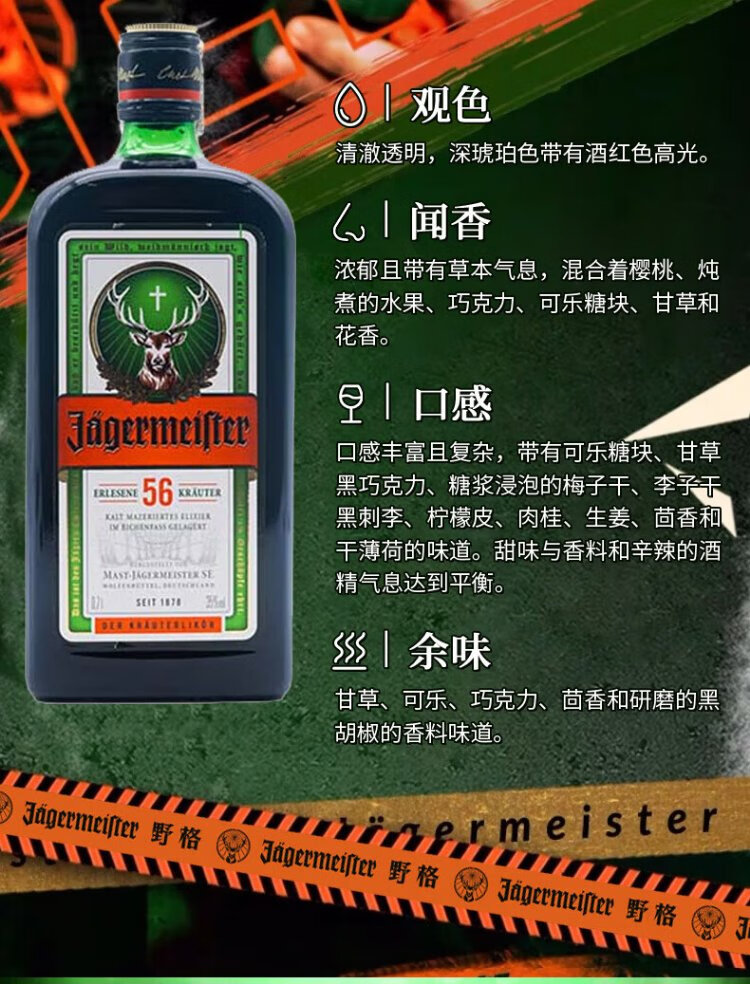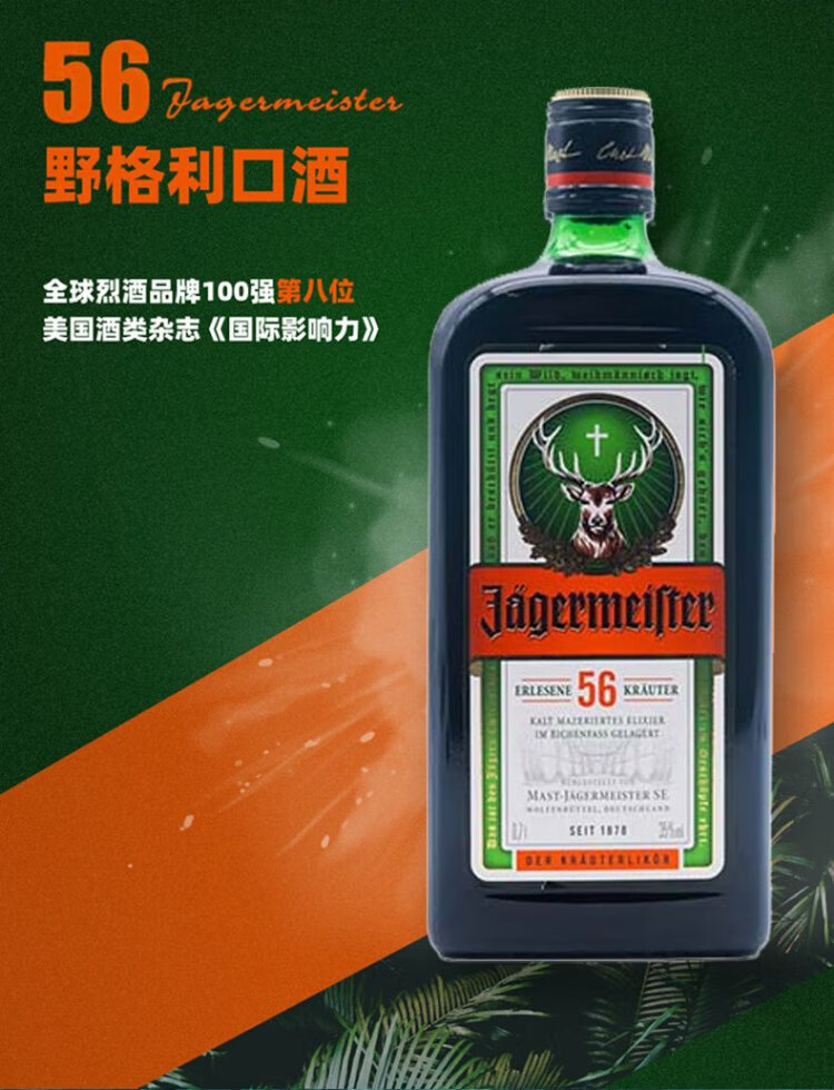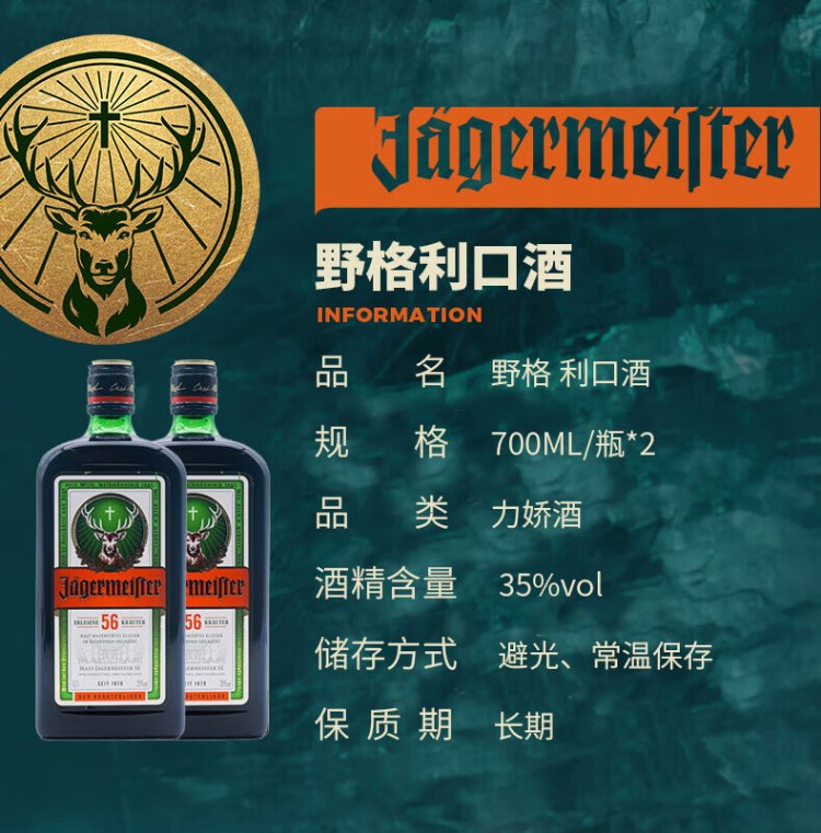 野格(Jagerneister)洋酒 力娇酒 利口酒 配制酒 700ml*2瓶 56版