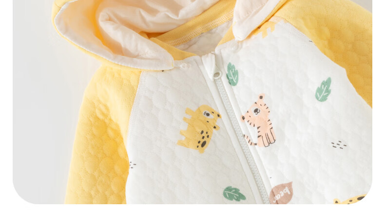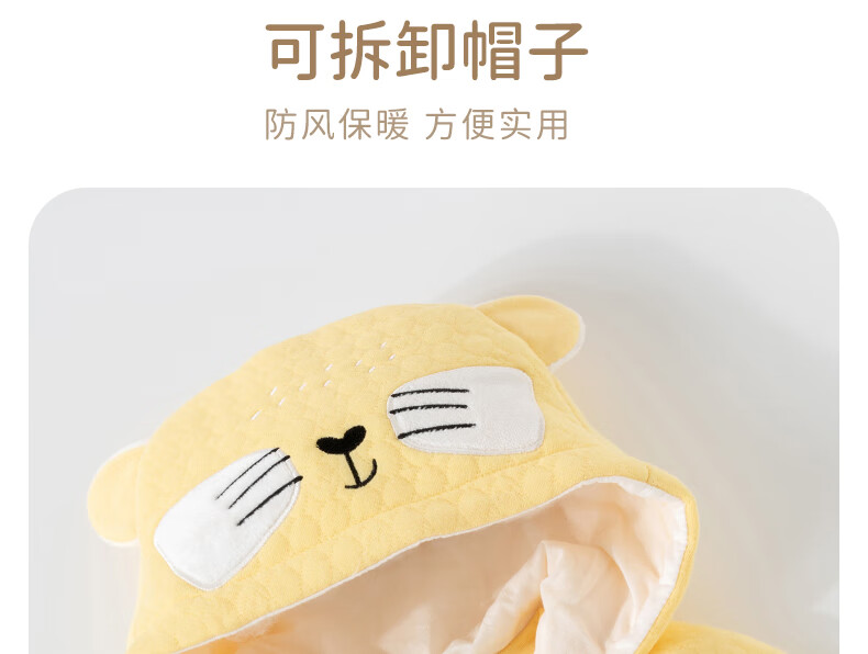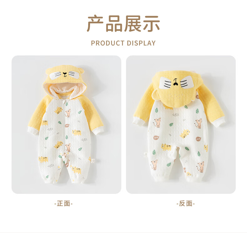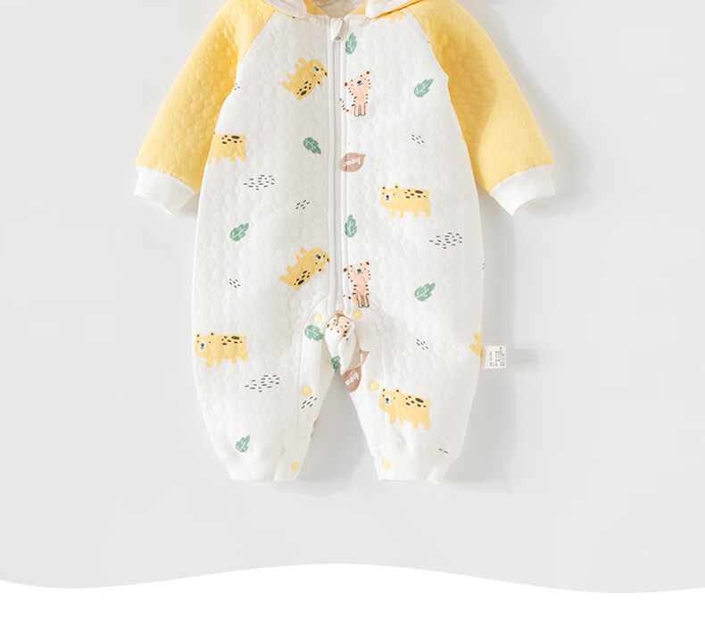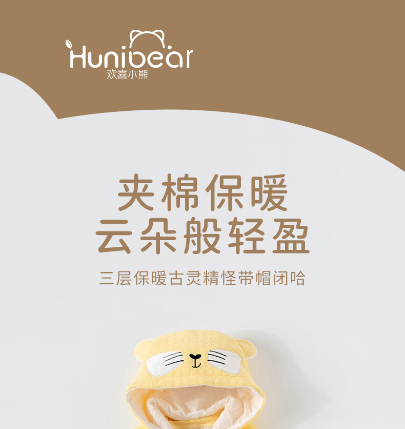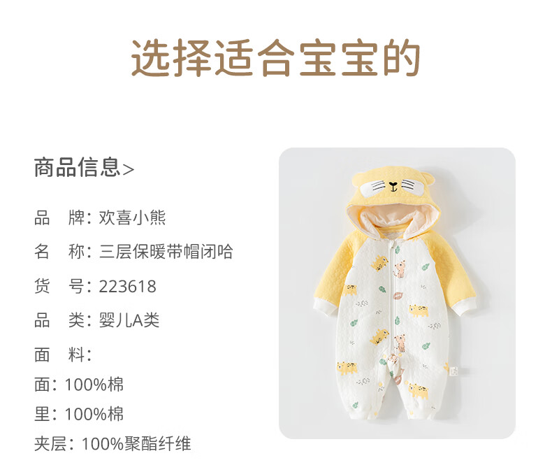 欢喜小熊婴儿连体衣秋季夹棉宝宝纯棉连帽哈衣外出爬服新生儿秋冬款衣服
