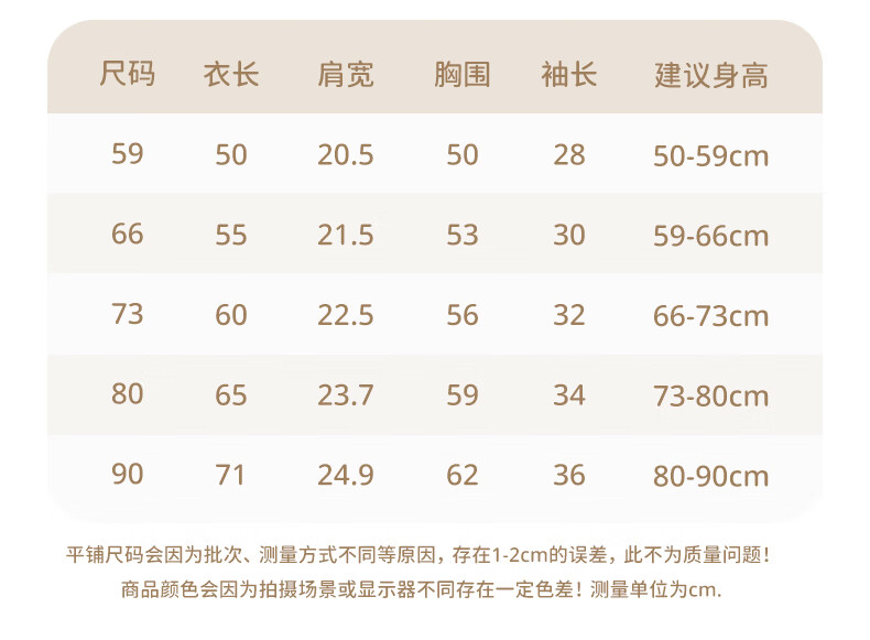 Size (cm) 42 44 46 48 50