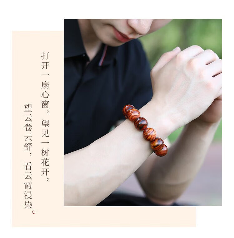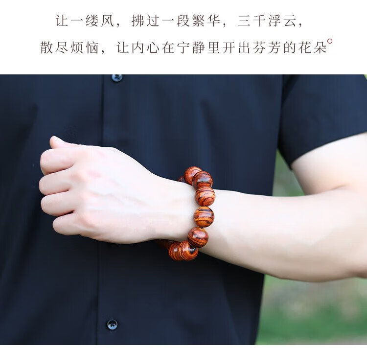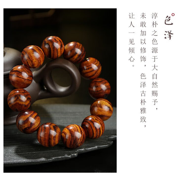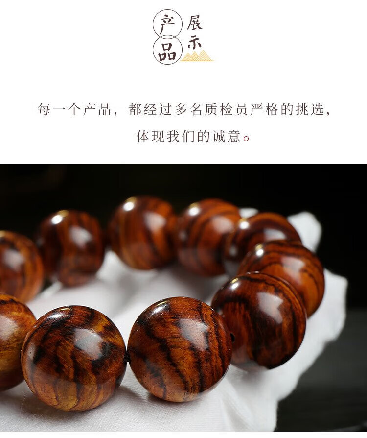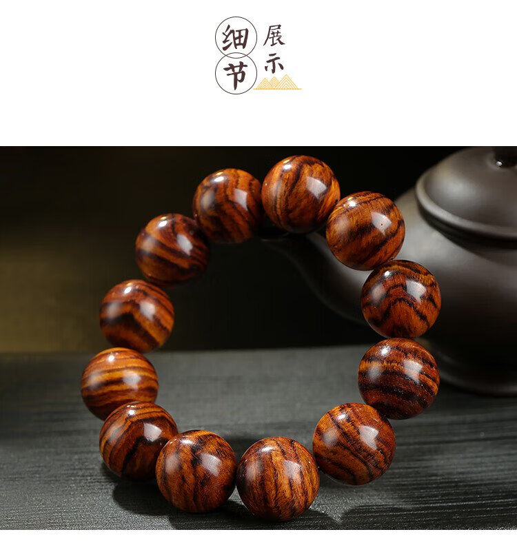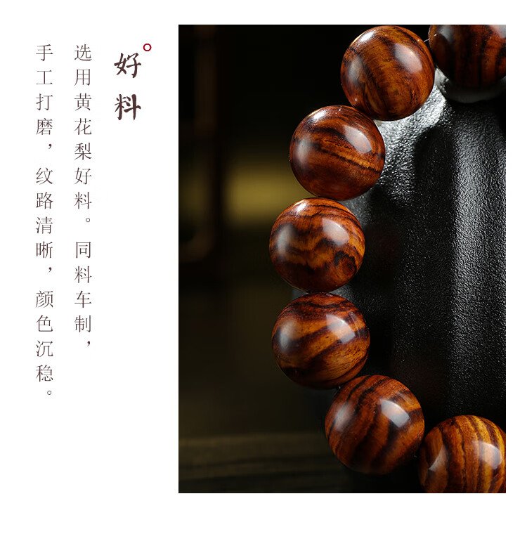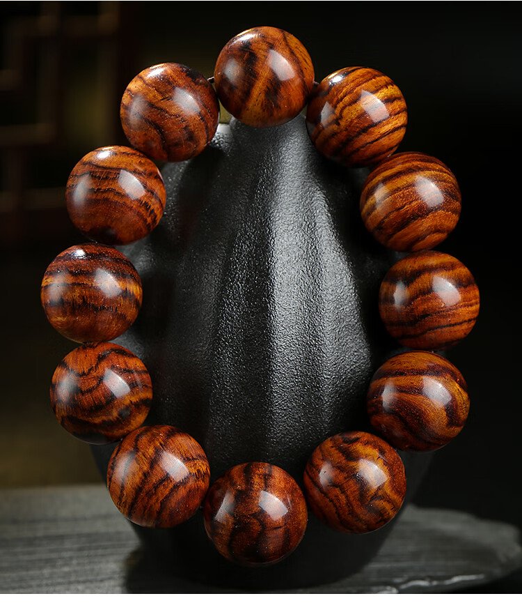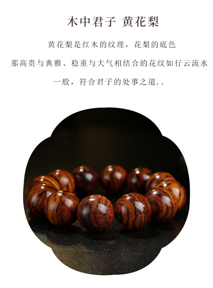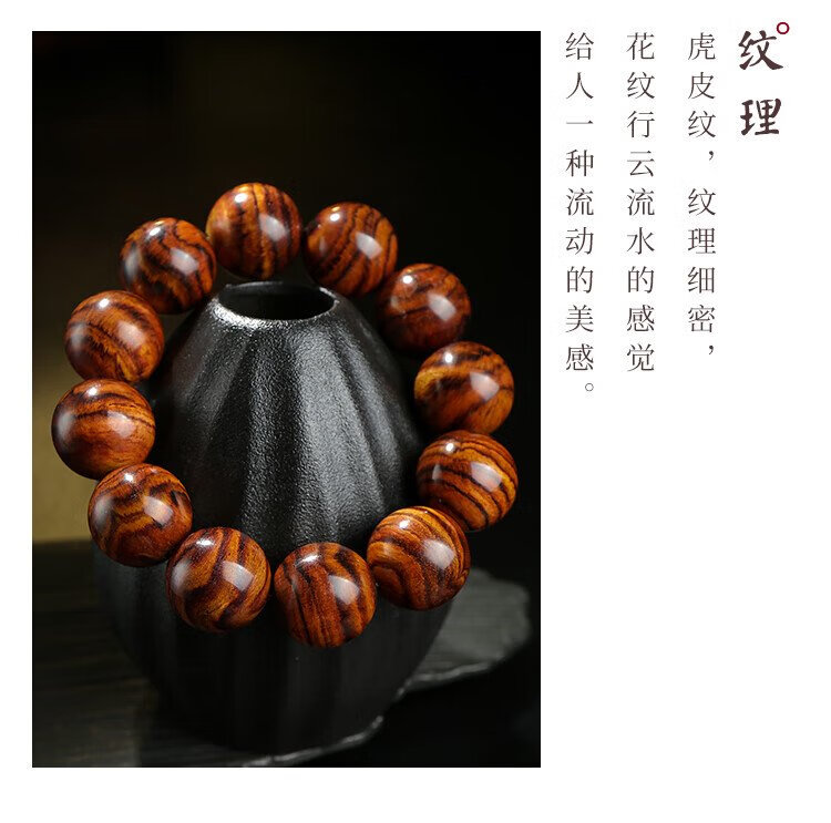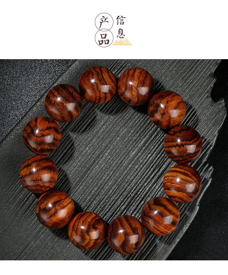 穆百年黄花梨手串 男女款虎皮纹佛珠老料高油高密单圈文玩手链 约20mm