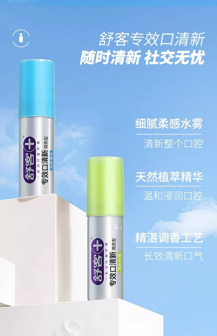 舒客专效口喷 口气清新剂口腔喷雾男女约会接吻便捷装柠檬+薄荷18ml*2